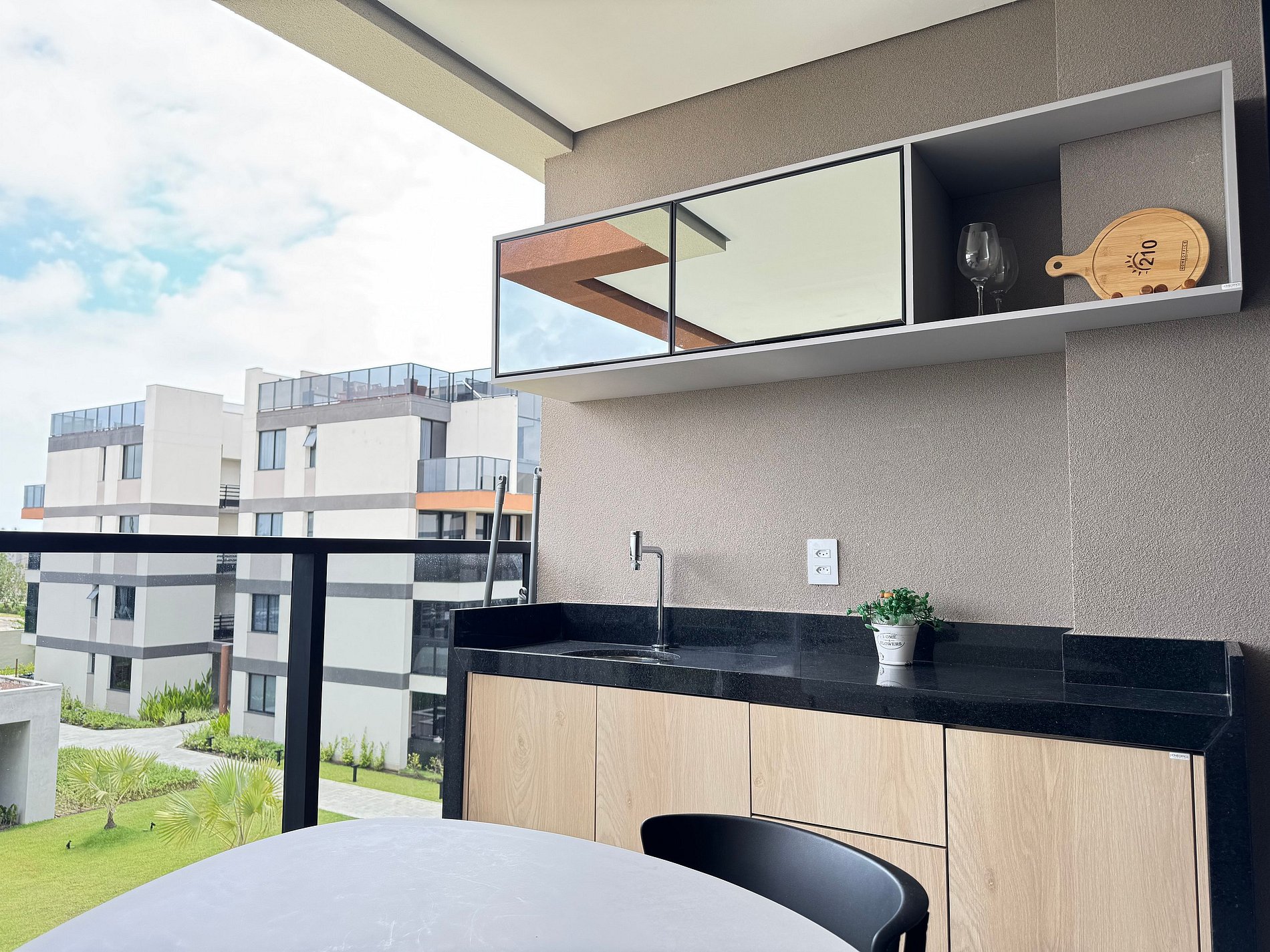 Relaxe com conforto e estilo neste flat de 1 quarto com varanda gourmet, localizado no Cais Eco Residência, um dos condomínios mais modernos e sustentáveis de Muro Alto – Porto de Galinhas.