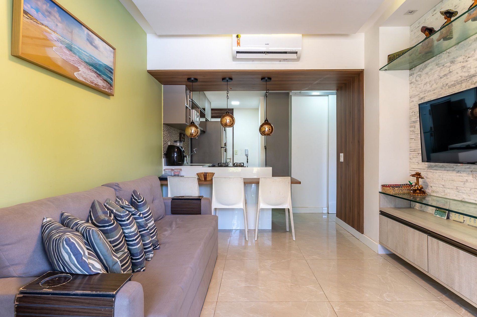 Praia do Muro Alto é uma ótima escolha para viajantes interessados em locais com clima tropical, litoral e sol em abundância. Nesse local, hospede-se em uma unidade perfeita para família ou amigos, acomodando até 6 pessoas, com bastante espaço, linda decoração e com estrutura de resort de encher os olhos. Com dois quartos, sendo 1 suíte com cama Casal, e outro quarto com 1 Beliche sendo cama casal em baixo e cama solteiro em cima, ar-condicionado, guarda-roupas, e amplo terraço com piscina na frente. Conte ainda com mais 1 sala com sofá, TV e ar-condicionado.