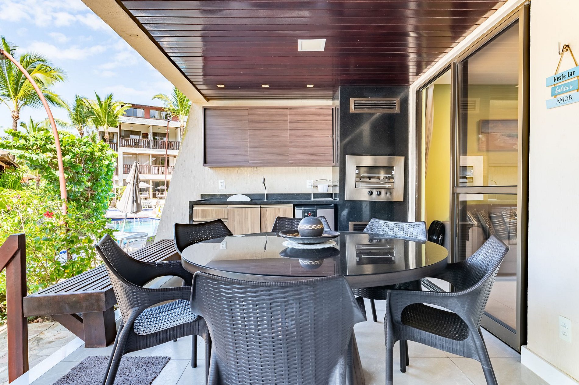 Esta acomodação fica no melhor bloco dentro do Nannai Residence e ainda mais, no térreo com piscina em frente da área da varanda/terraço para sua comodidade e de toda sua família, e mais, com um Churrasqueira e Cervejeira na Varanda. O bloco Dourado dentro do Nannai Residence é o primeiro bloco frente mar, ou seja, em poucos metros nosso hóspede está com o pé na areia.