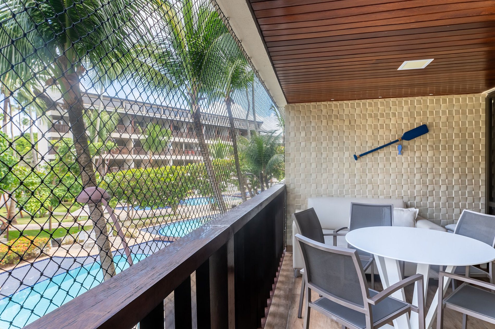 Esta acomodação tem três suítes bem decoradas, no primeiro andar do Bloco Mero no Nannai Residence. Vista para piscinas e varanda Gourmet para sua comodidade e de toda sua família. O flat é amplo e completo com Cozinha bem equipada e até Adega.