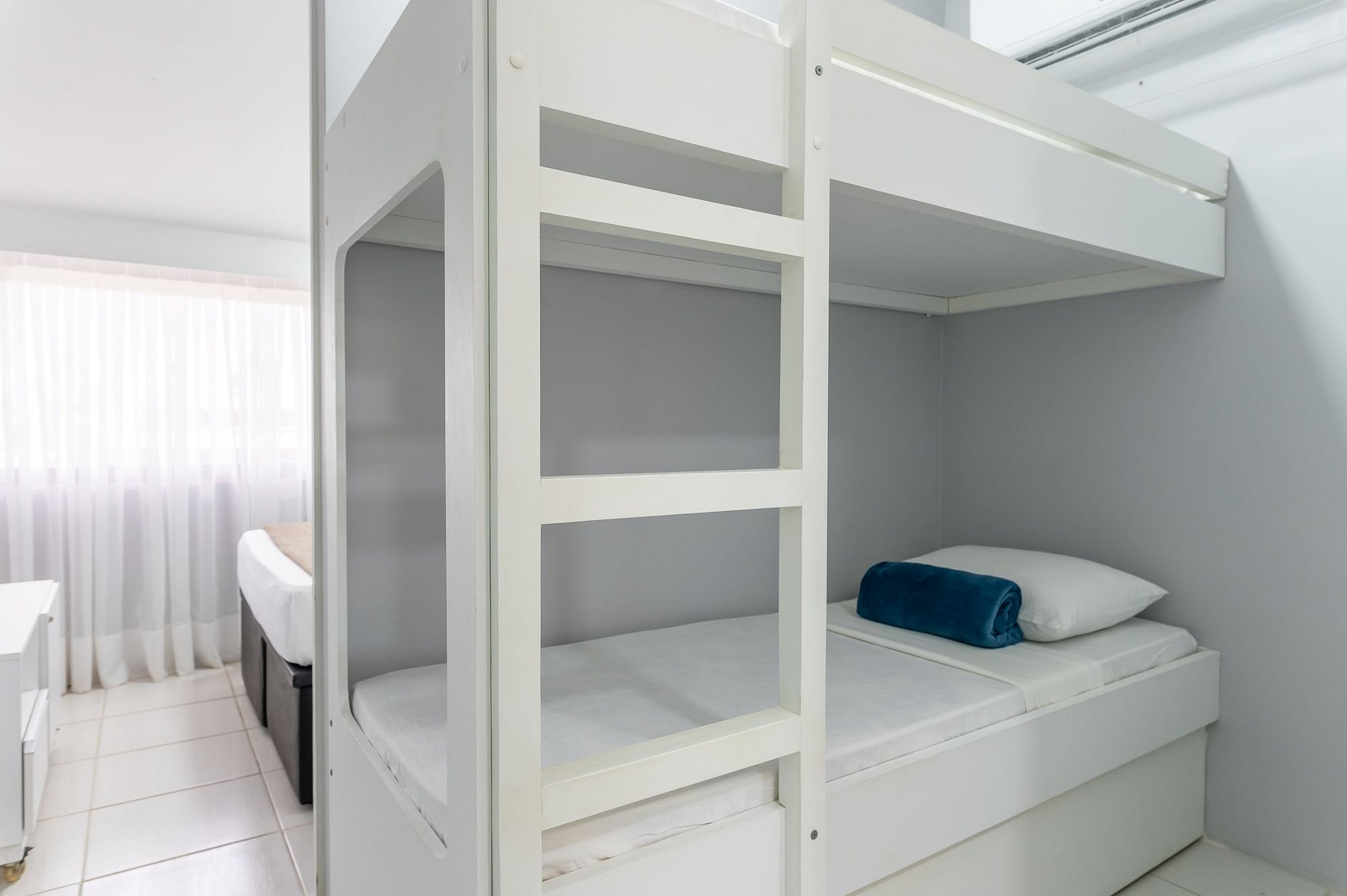 Praia do Muro Alto é uma ótima escolha para viajantes interessados em locais com clima tropical, litoral e sol em abundância. Nesse local, hospede-se em uma unidade perfeita para família ou amigos, acomodando até 5 pessoas, com bastante espaço, boa decoração e com estrutura de resort de encher os olhos. Com 1 suíte grande conte com uma cama de casal, uma cama Beliche e uma cama auxiliar solteiro, TV, ar-condicionado, guarda-roupas, e varanda. Conte ainda mais com sofá cama na sala, TV e ar-condicionado.