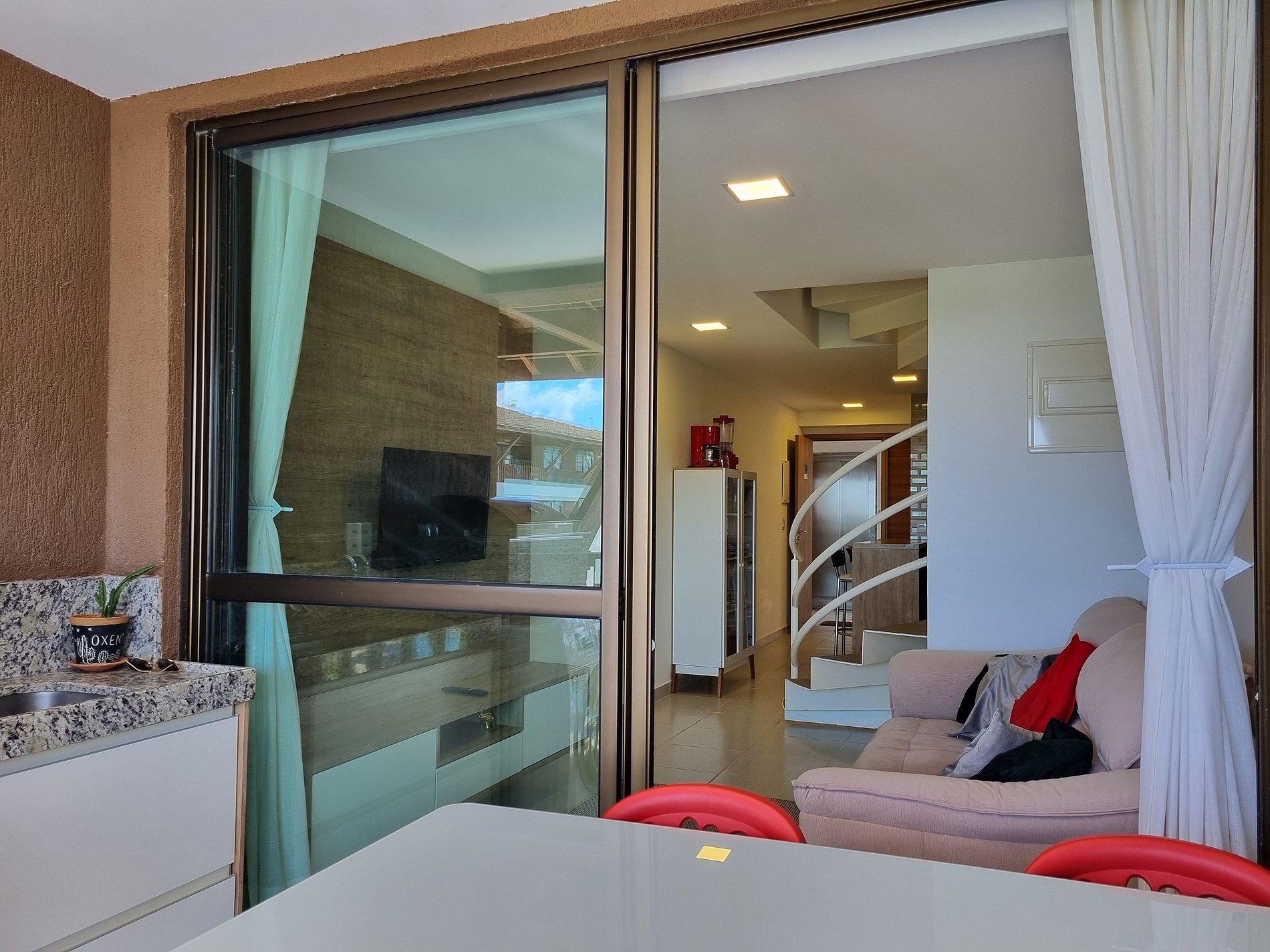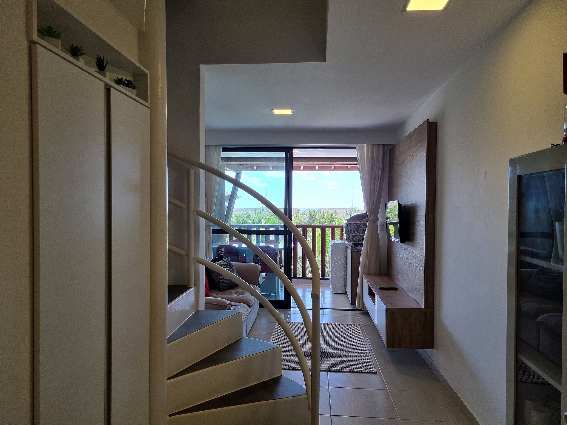 O Apartamento é tipo Duplex com 2 Suítes Equipadas com TV e Ar, 1 Lavabo, Sala com sofá, tv, mesa e cadeiras, Cozinha completa, Varanda com Vista para o Piscinas e Mar com Churrasqueira. Conte com Ar condicionado, TV, Internet, roupa de cama e banho e utensílios e eletros básicos.