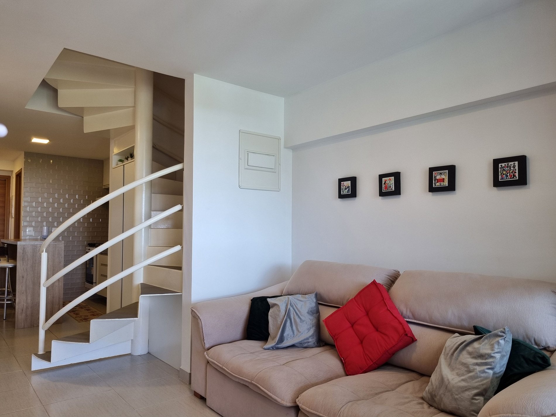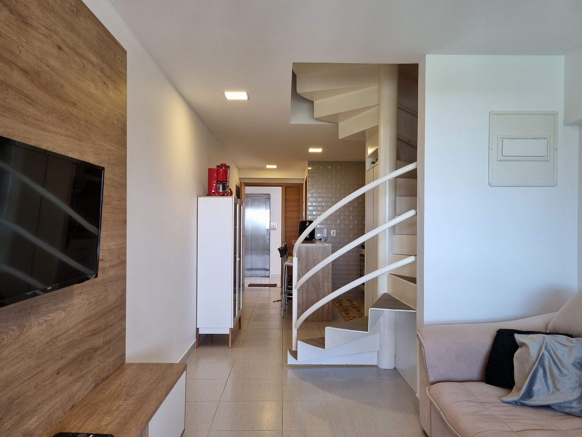 - Sala de estar com sofá e TV;