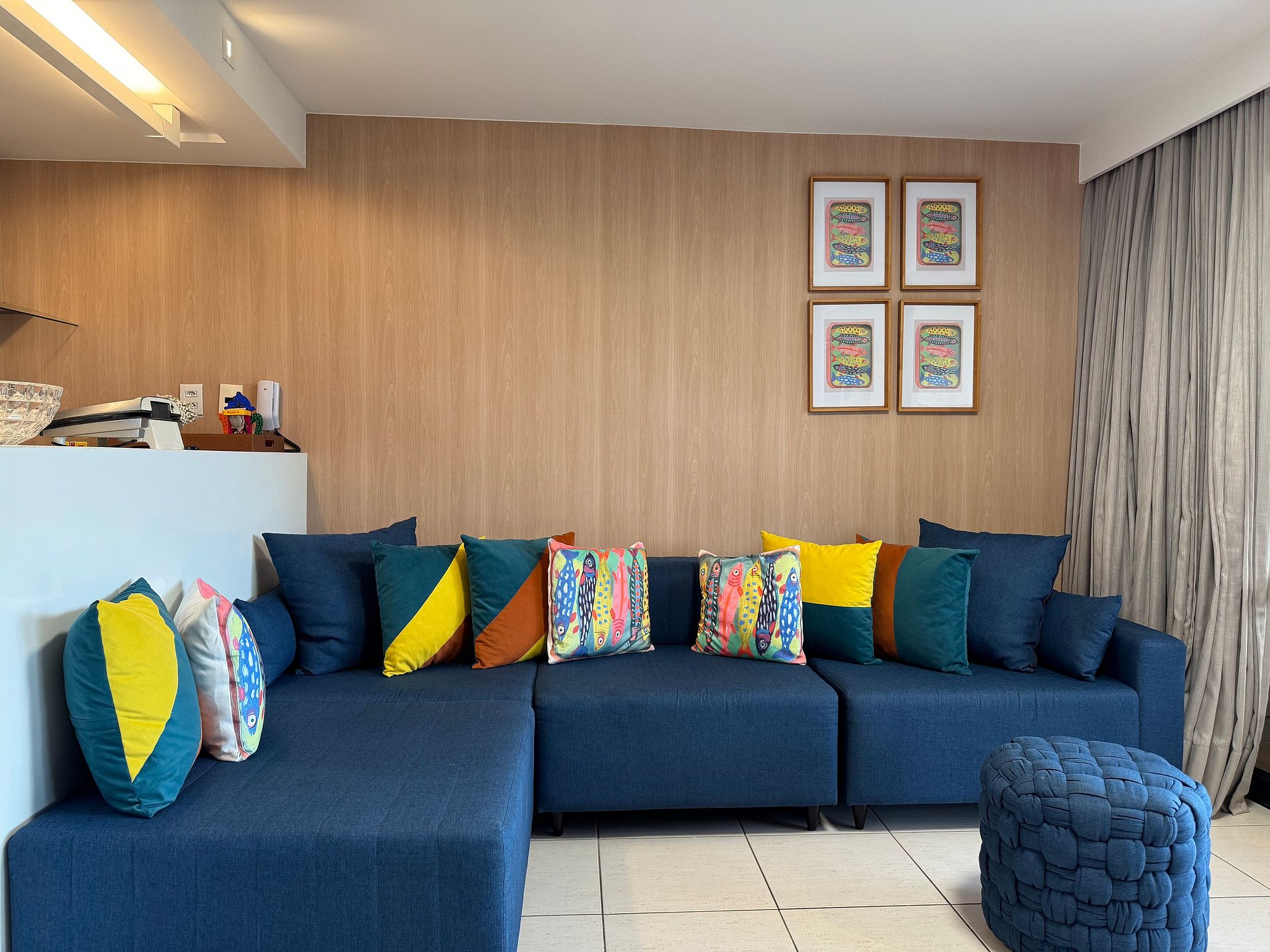 Praia do Muro Alto é uma ótima escolha para viajantes interessados em locais com clima tropical, litoral e sol em abundância. Nesse local, hospede-se em uma unidade perfeita para família ou amigos, acomodando até 8 pessoas, com bastante espaço, linda decoração e com estrutura de resort de encher os olhos. Com 100 metros quadrados, três quartos sendo duas suítes entre camas Queen e Casal, todas com Ar-condicionado e TV, Amplo terraço com Vista para Piscinas. Conte ainda com mais uma sala com sofá, TV e ar-condicionado.