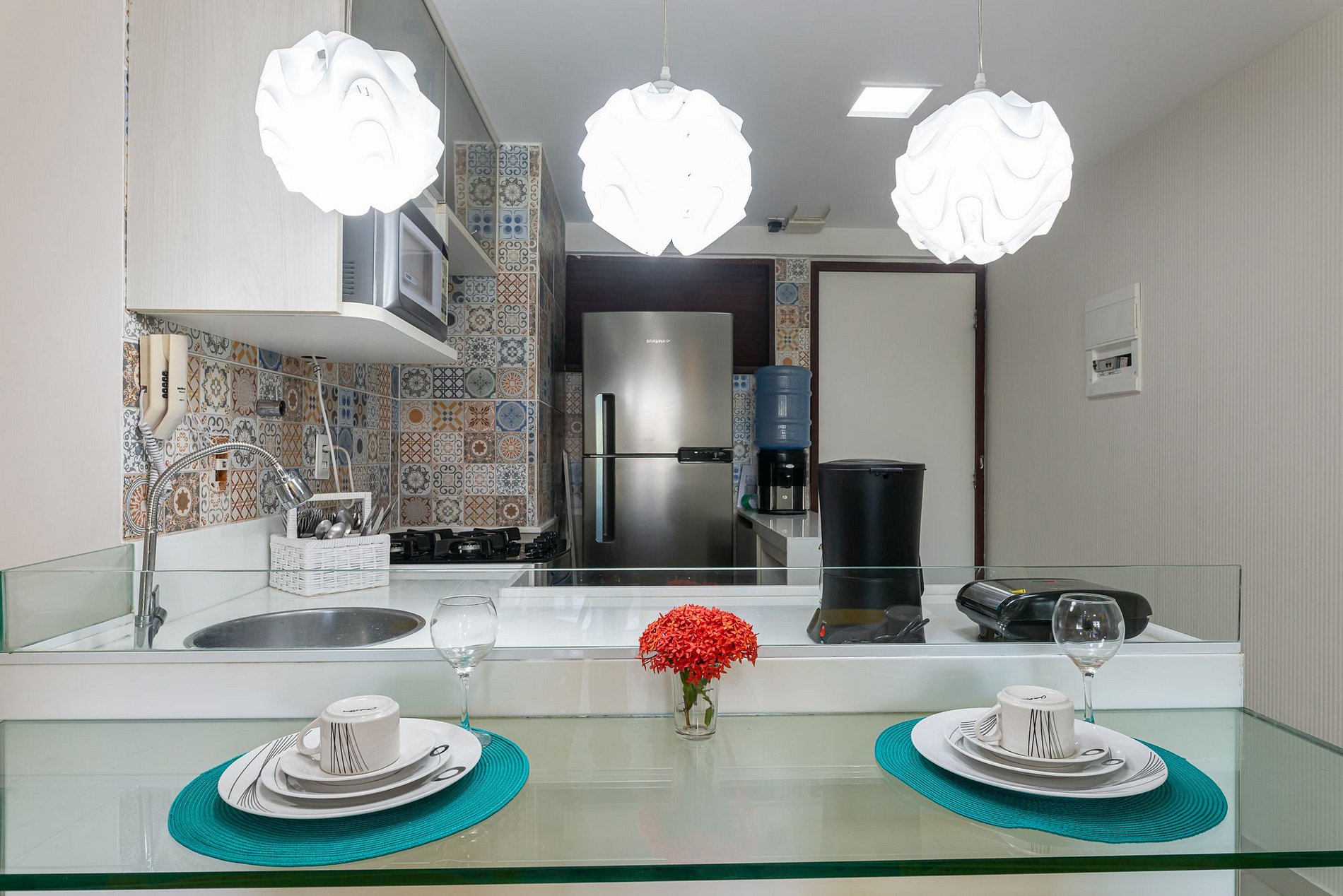 No mais, você vai encontrar 1 banheiro social, mesa para jantar, sala de estar com TV, sofá e cadeiras, varanda com mesas, cadeiras. Na cozinha você tem tudo que precisa: geladeira, micro-ondas, fogão, forno, jogo de prato, talheres, copos, xícaras, taças, e panelas, abridor de vinho e sanduicheira.