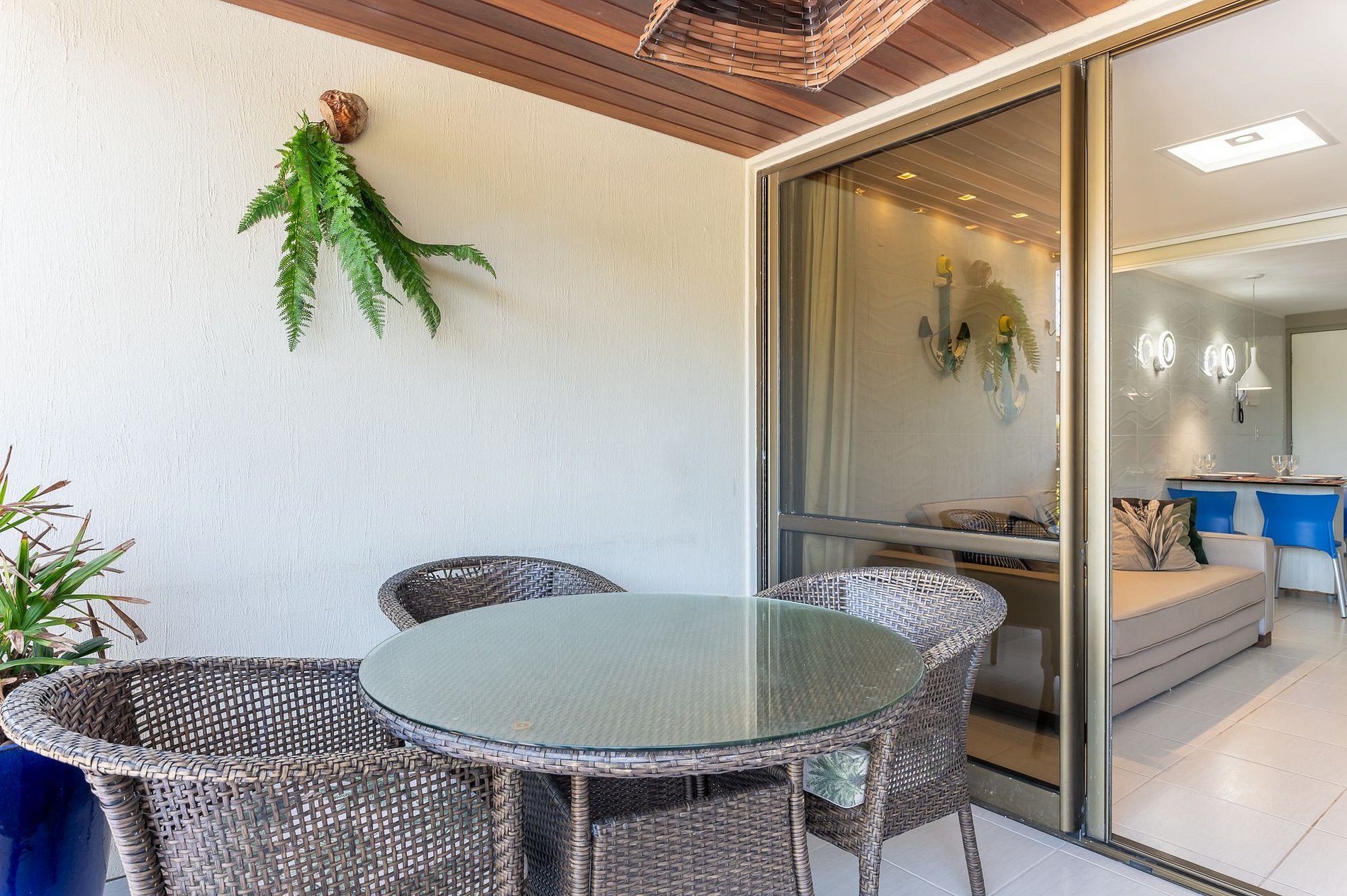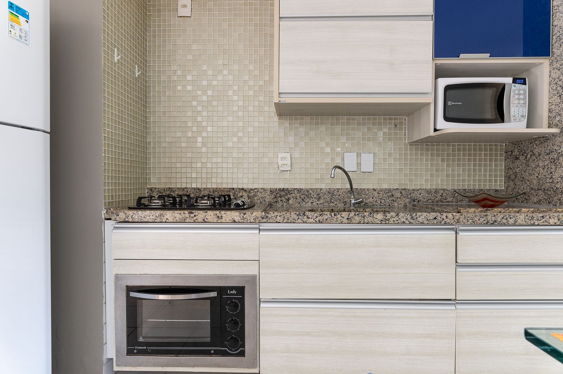 No mais, você vai encontrar 1 banheiro social, mesa para jantar, sala de estar com TV, sofá e cadeiras, varanda com mesa e cadeiras. Na cozinha você tem tudo que precisa: geladeira, micro-ondas, cafeteira, fogão, forno, jogo de prato, talheres, copos, xícaras, taças, e panelas, abridor de vinho, gelágua e sanduicheira.