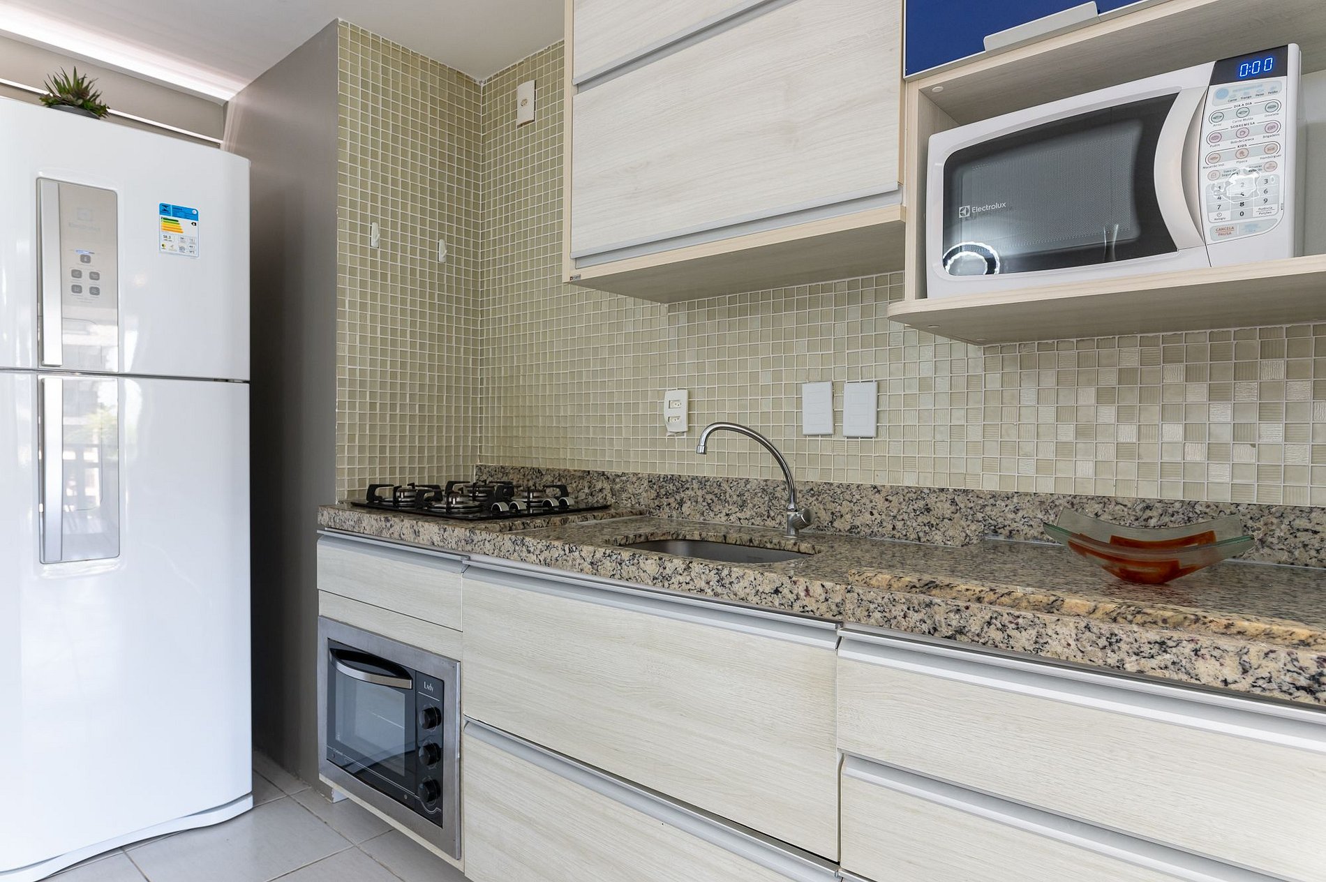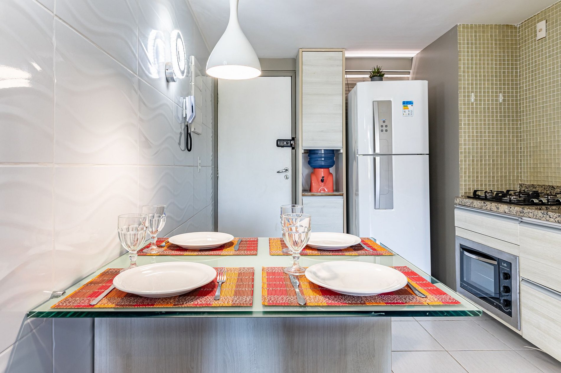 No mais, você vai encontrar 1 banheiro social, mesa para jantar, sala de estar com TV, sofá e cadeiras, varanda com mesa e cadeiras. Na cozinha você tem tudo que precisa: geladeira, micro-ondas, cafeteira, fogão, forno, jogo de prato, talheres, copos, xícaras, taças, e panelas, abridor de vinho, gelágua e sanduicheira.
