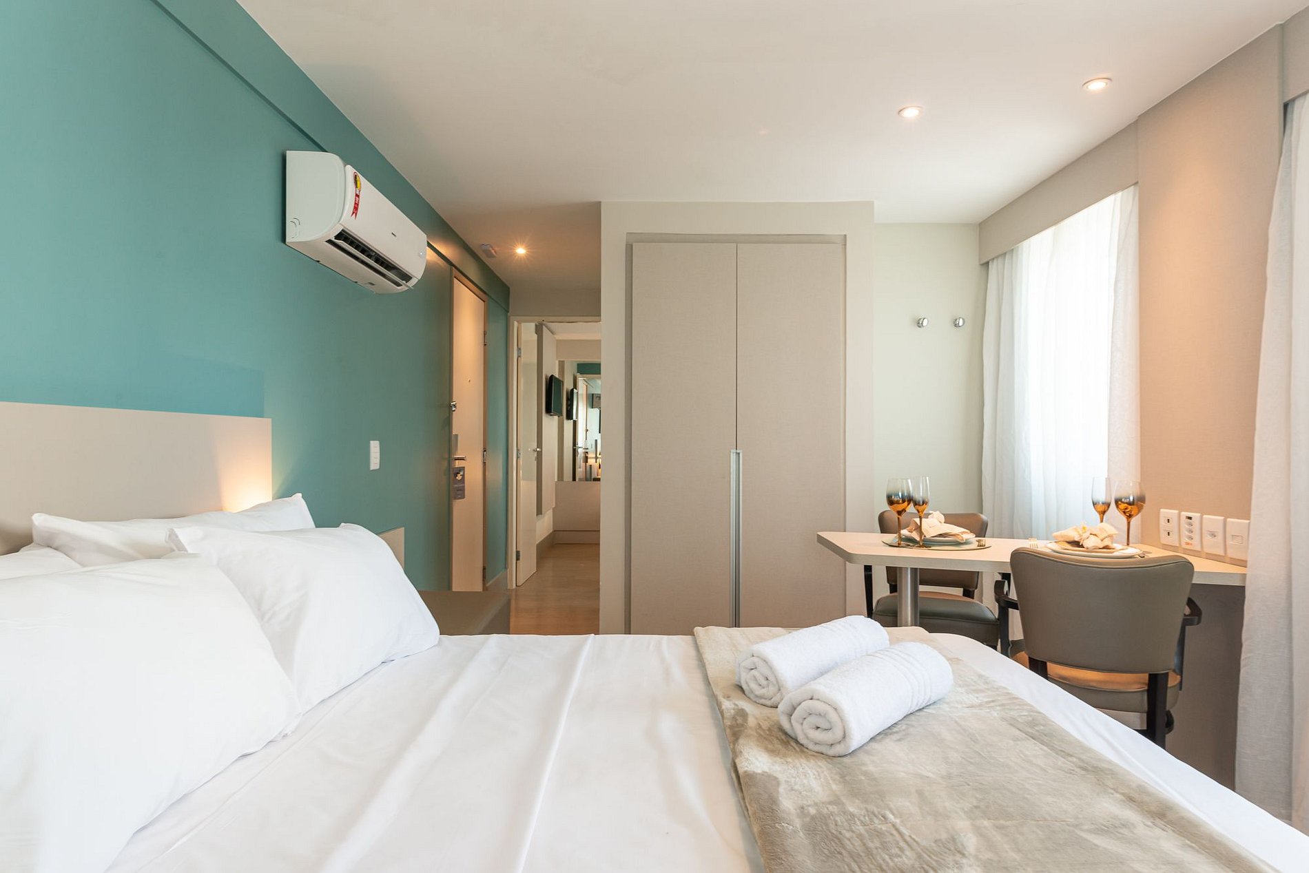- O condomínio no qual está localizado o flat é operado por Hotel de Grande Porte.