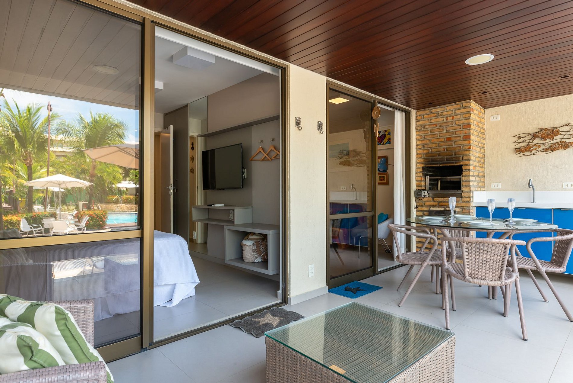 Esta acomodação fica no melhor bloco dentro do Nannai Residence e ainda mais, no térreo com piscina em frente da área da varanda/terraço para sua comodidade e de toda sua família, e mais, com um Churrasqueira Carvão na Varanda. O bloco Marlim dentro do Nannai Residence, é o primeiro bloco frente mar, ou seja, em poucos metros nosso hóspede está com o pé na areia.