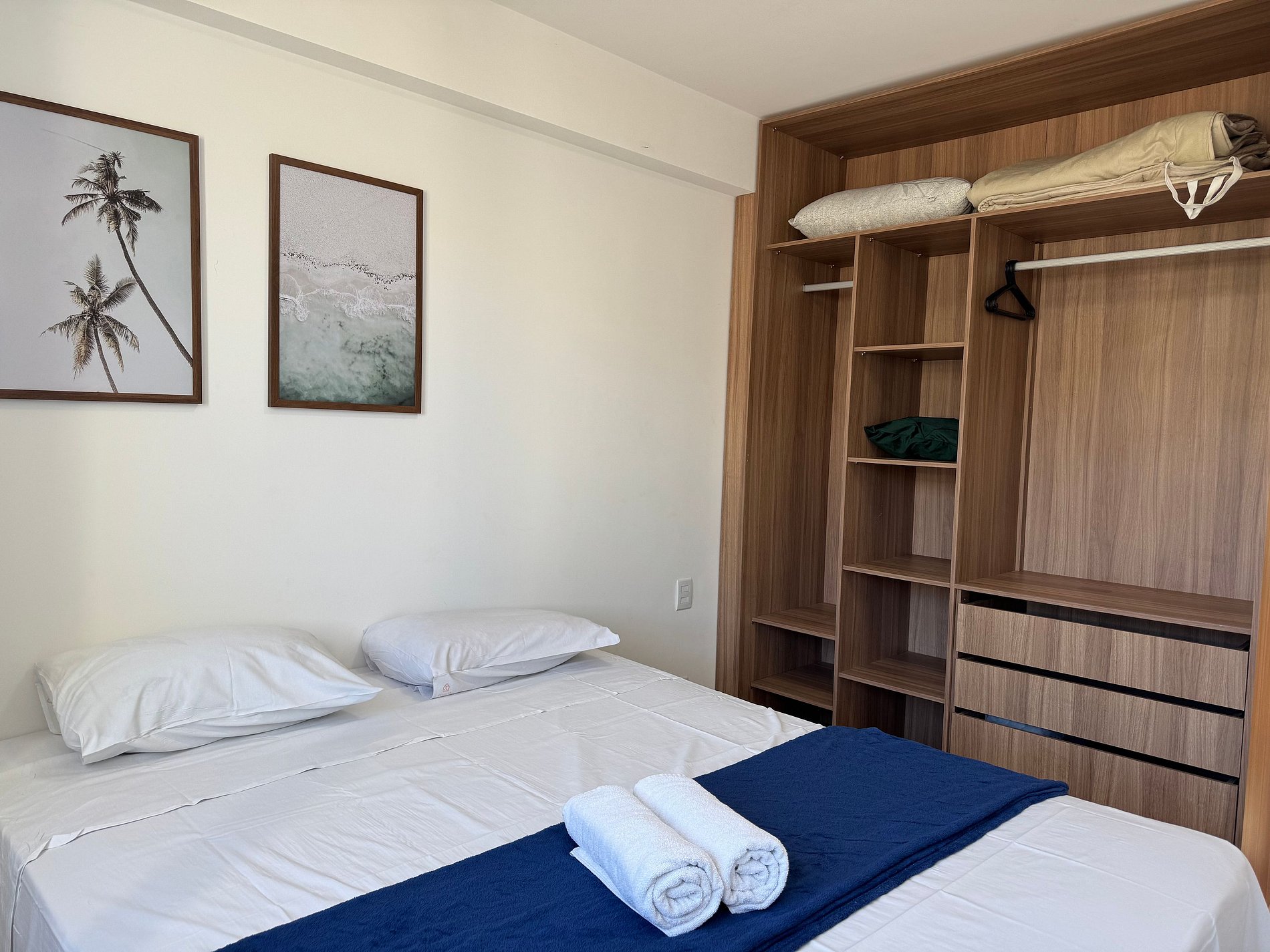 O apartamento tem 60m2 com dois Quartos sendo uma suíte completa com Ar-condicionado e cama casal, e um quarto social com 2 camas solteiro, ar condicionado. Sala de estar com TV, Sofá, cozinha completa com Geladeira, Fogão Elétrico 4 bocas, Forno Micro-ondas, sanduicheira, forno Grill. Estacionamento privativo para 1 carro.