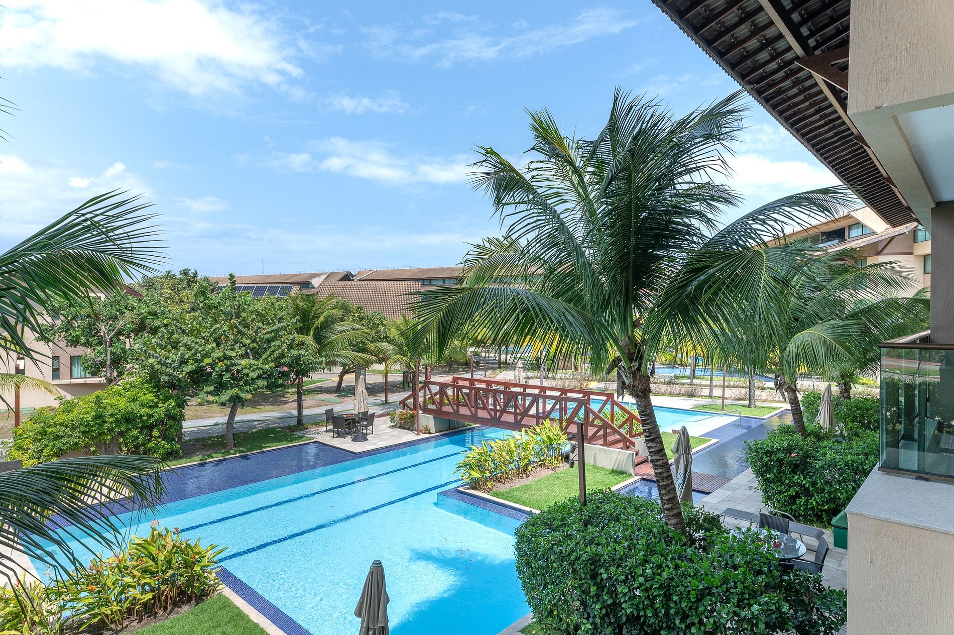 Somos um destino ideal tanto para férias em família, casais que buscam um ambiente para um retiro a dois, assim como para realização do seu evento. Diversas piscinas espalhadas por todo o condomínio estarão a disposição de todos nossos hóspedes sem restrições além disso conte com um deck de frente pro mar.