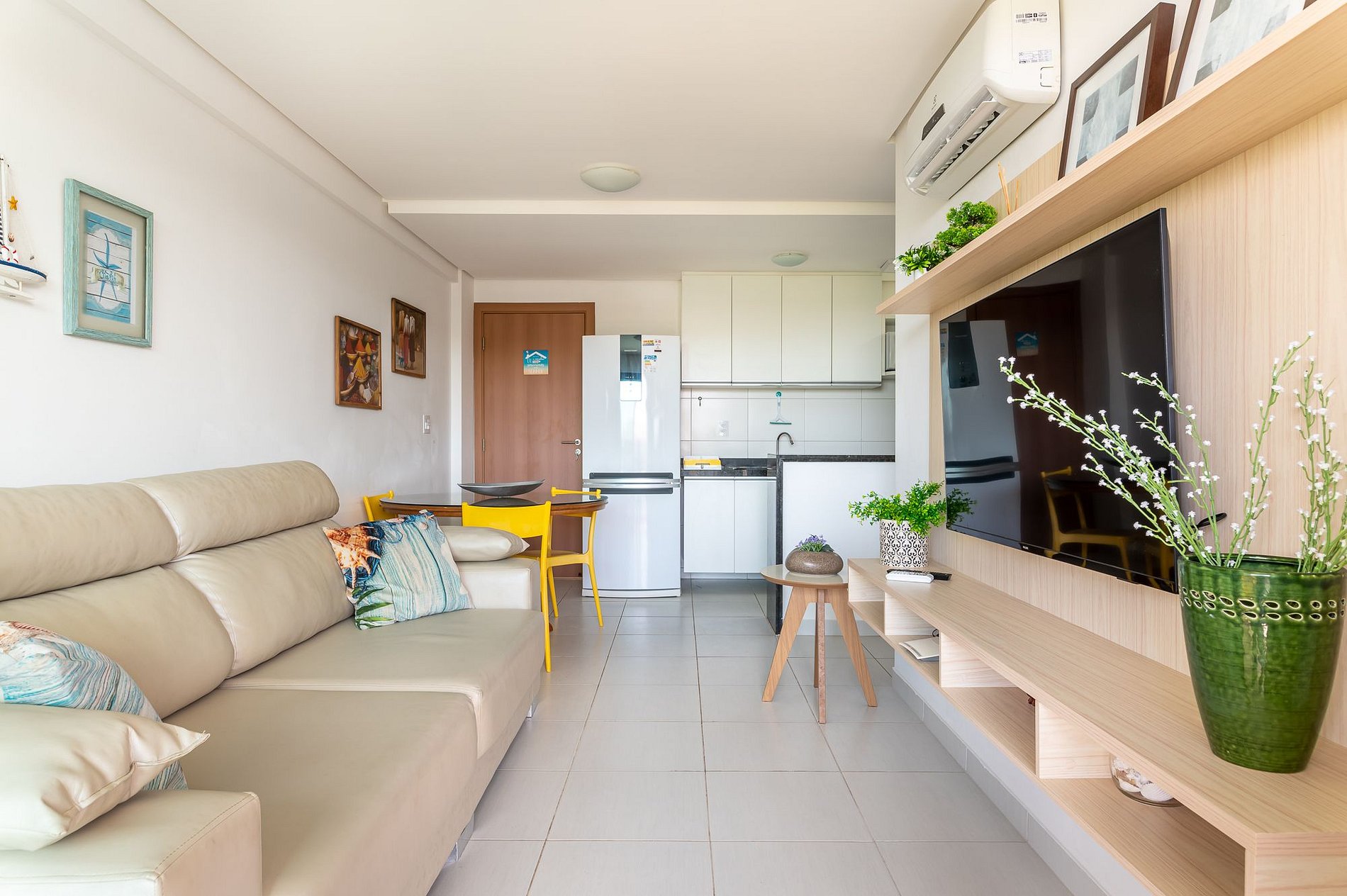 O Apartamento tem 2 Quartos sendo uma suíte, 2 Wc, Sala com sofá, tv, mesa e cadeiras, Cozinha completa, Varanda com Vista para o Mar e piscinas belíssima. Conte com Ar condicionado, TV, Internet, roupa de cama e banho e utensílios e eletros básicos.