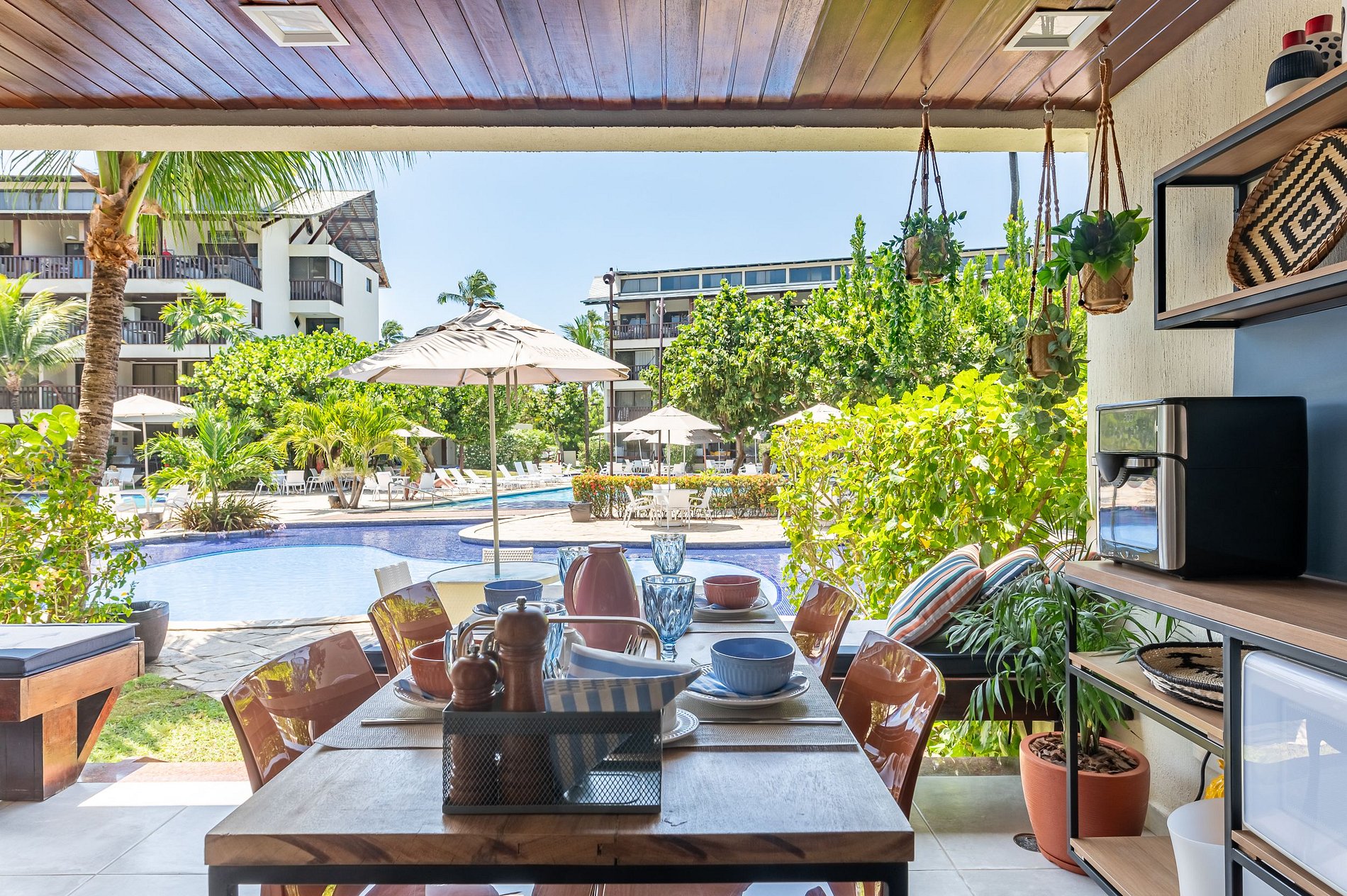 3 quartos (1 suíte), cozinha equipada e localização privilegiada no térreo, com acesso rápido à piscina.