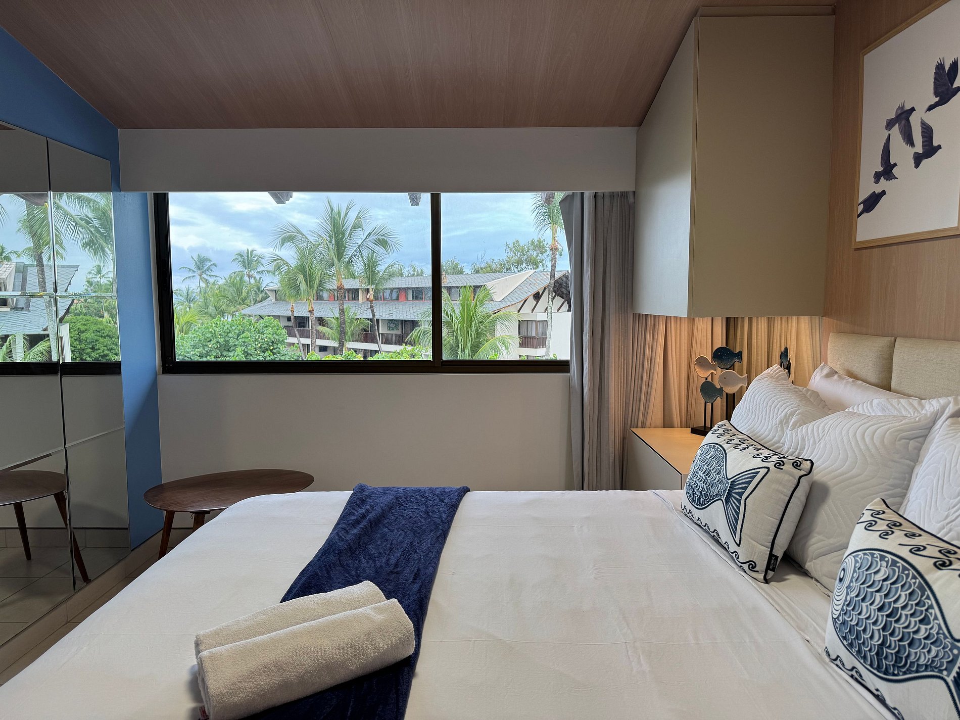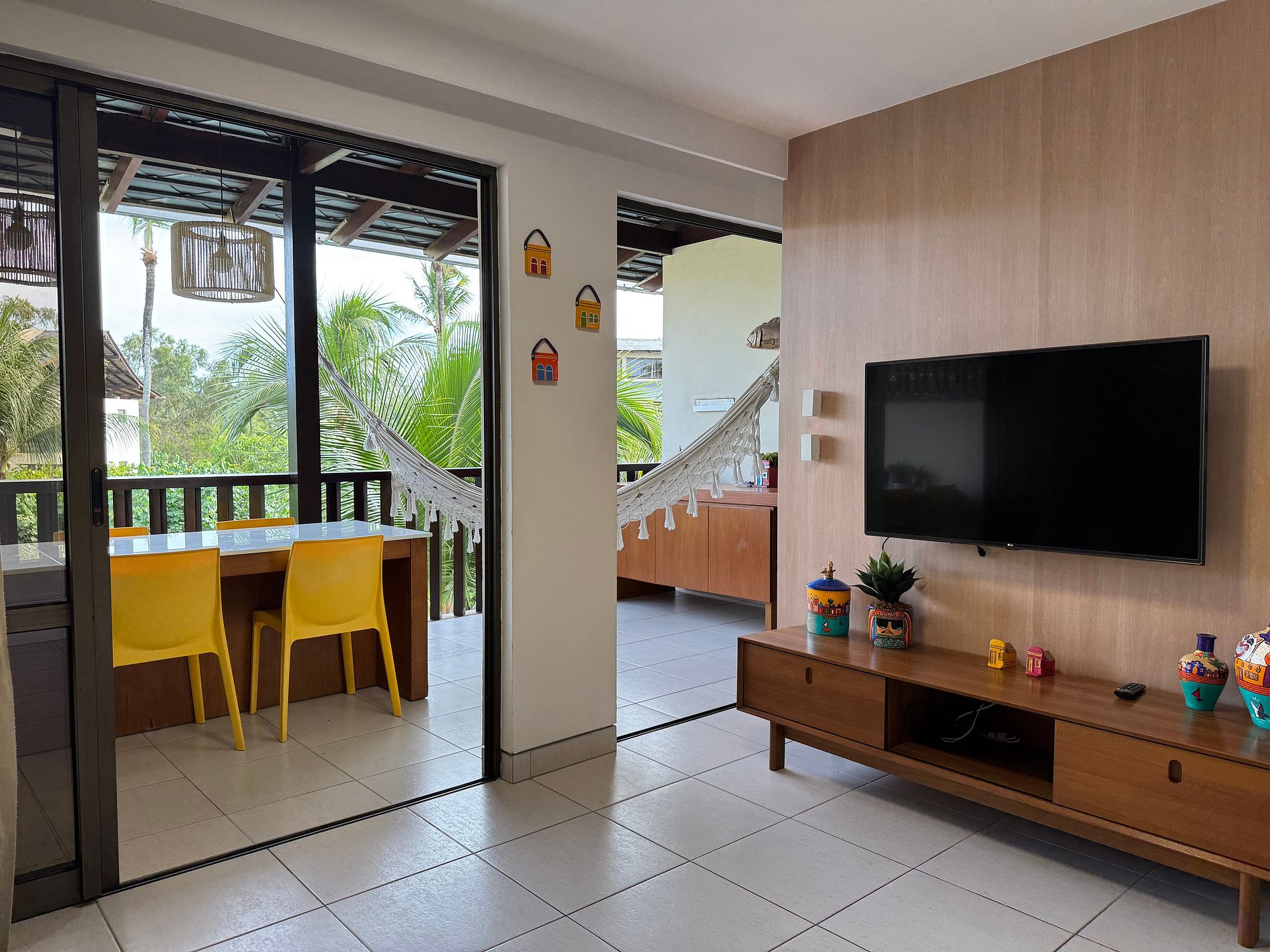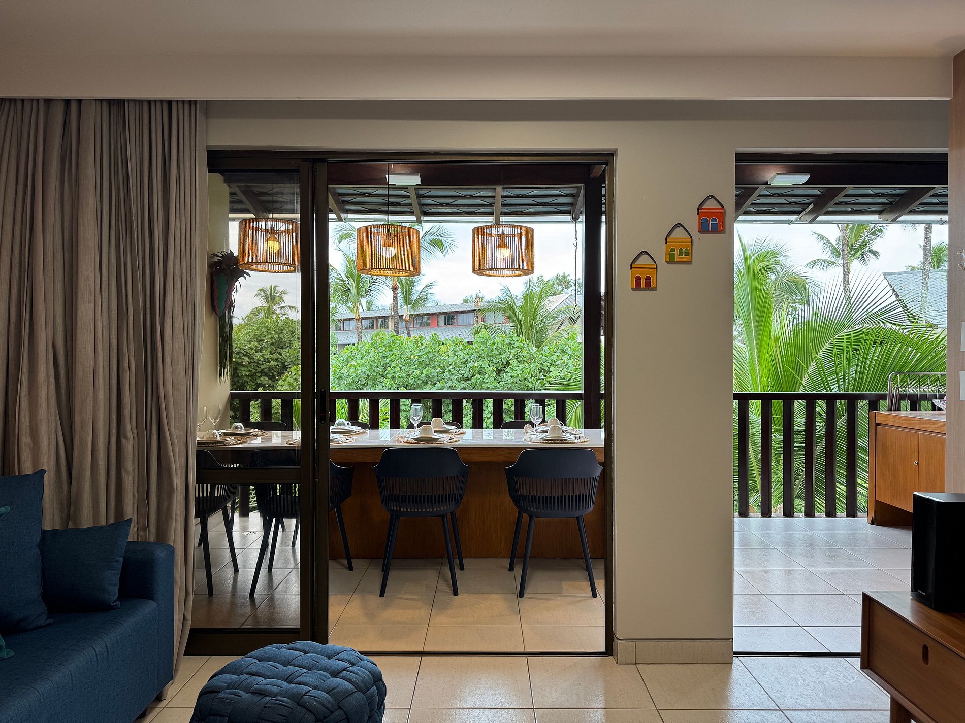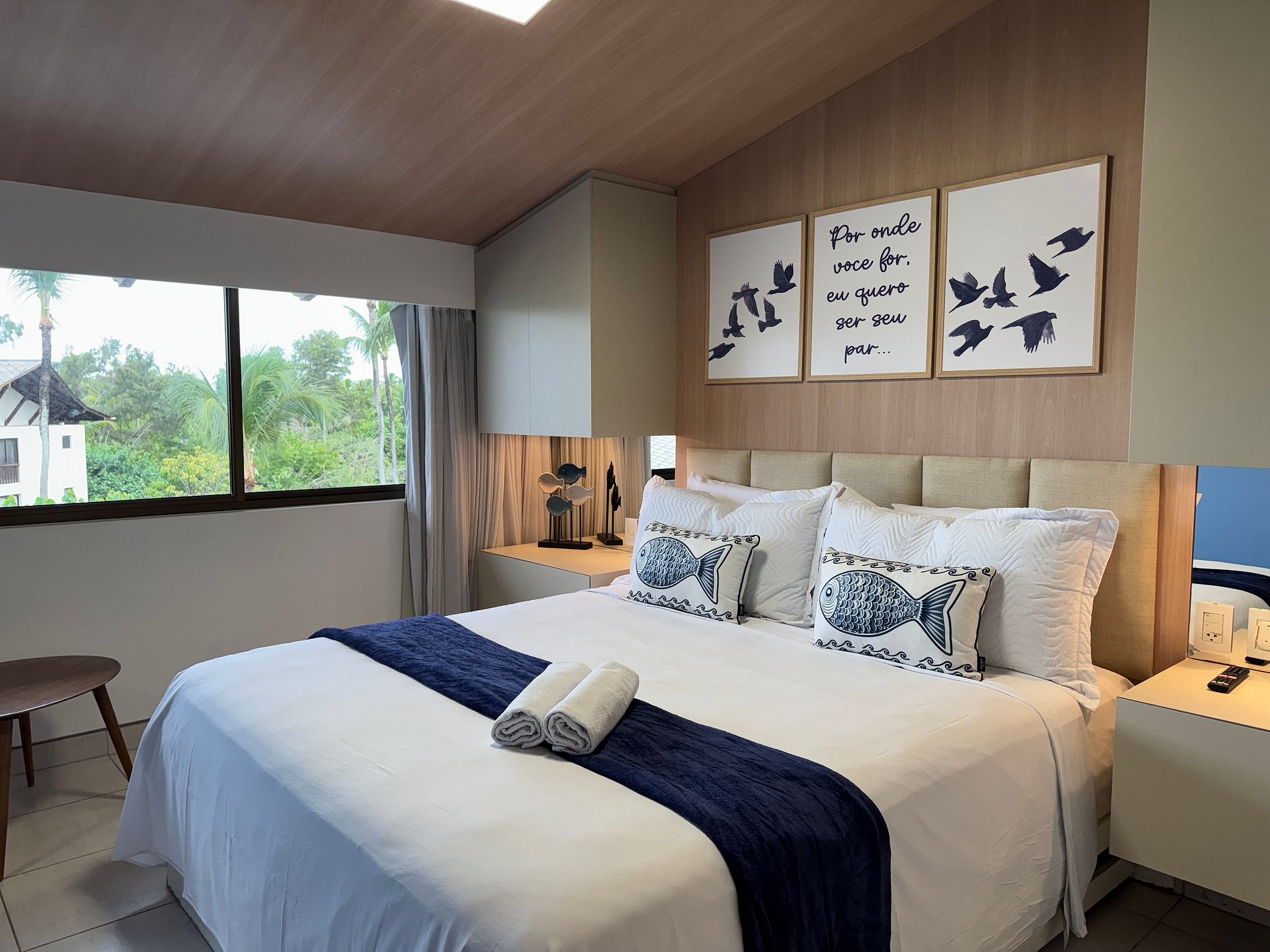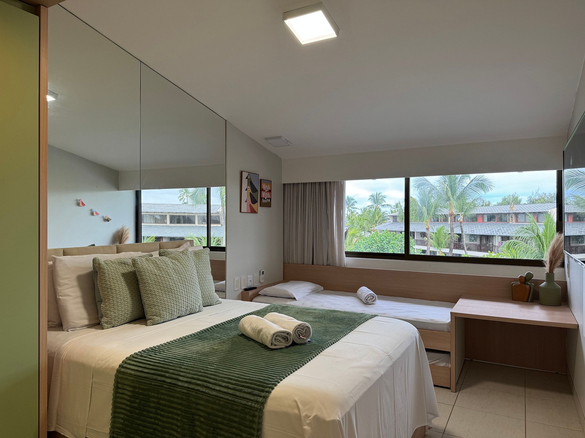 Esta acomodação é um duplex de 100 metros quadrados com três quartos sendo duas suítes. Fica localizado no terceiro andar do Bloco Mero no Nannai Residence. Para sua comodidade o flat tem uma varanda ampla com vista para piscinas. Apartamento com cozinha totalmente equipada e uma decoração de bom gosto.