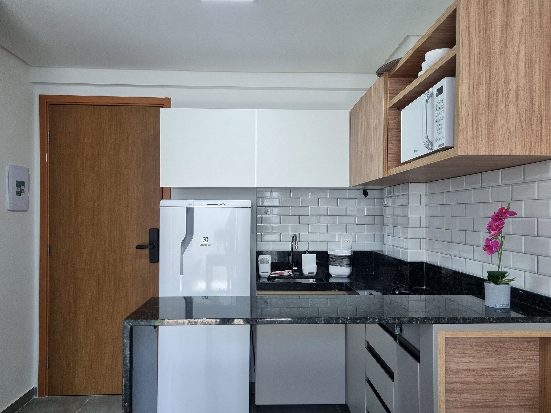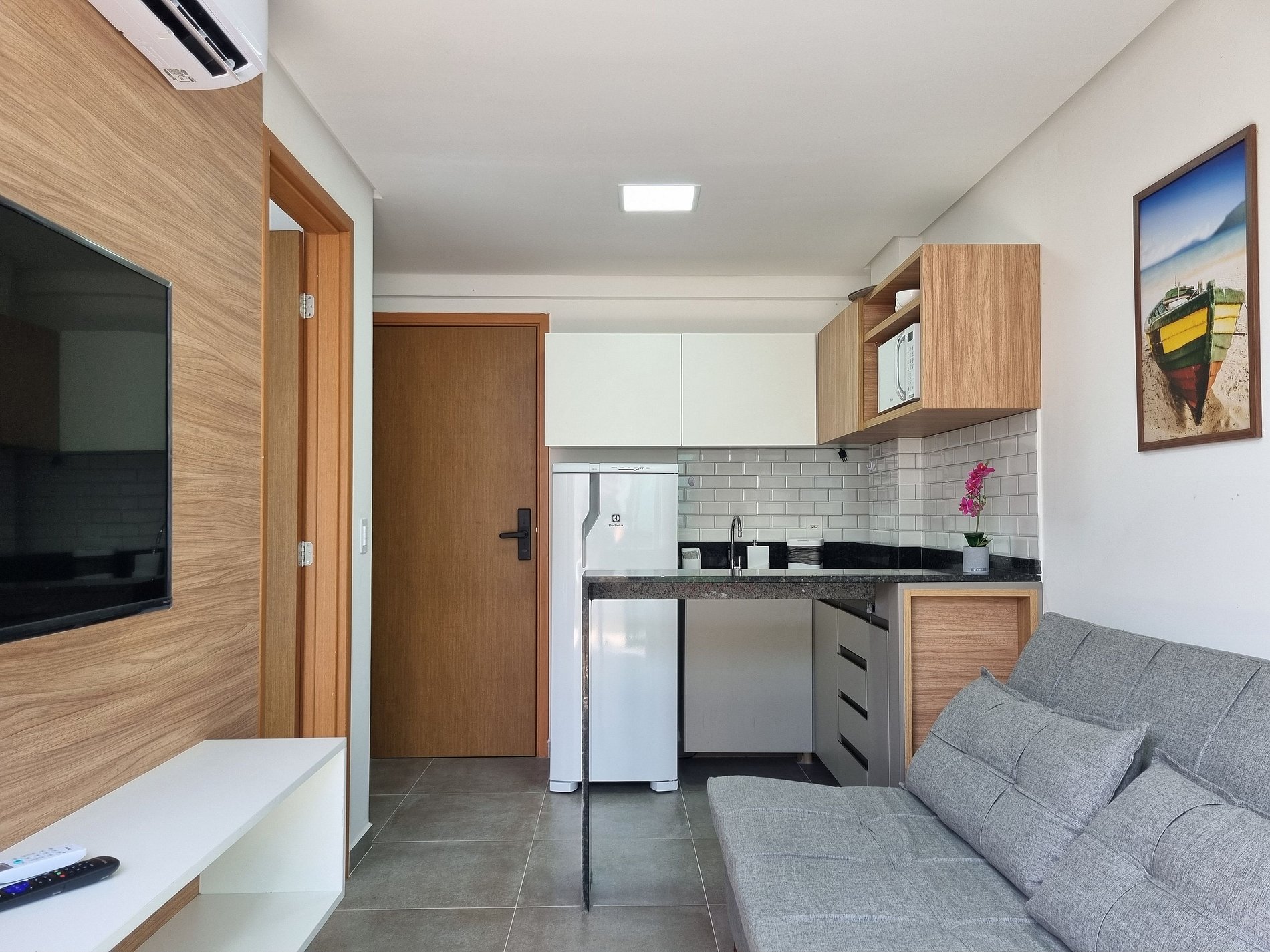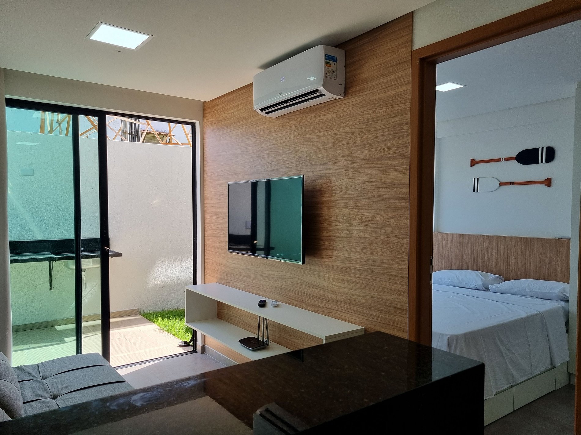 Apartamento Novo bem mobilizado localizado na praia do Cupe em Porto de Galinhas. O Flat fica Condomínio Marina do Cupe recém inaugurado muito próximo das principais praias da Região. O apartamento tem 35 metros quadrados, 1 quarto, 1 WC Social, Sala de Jantar e Estar, Cozinha Mobiliada e Varanda com área verde. No condomínio você vai contar com 1 piscina na cobertura com vista aérea.