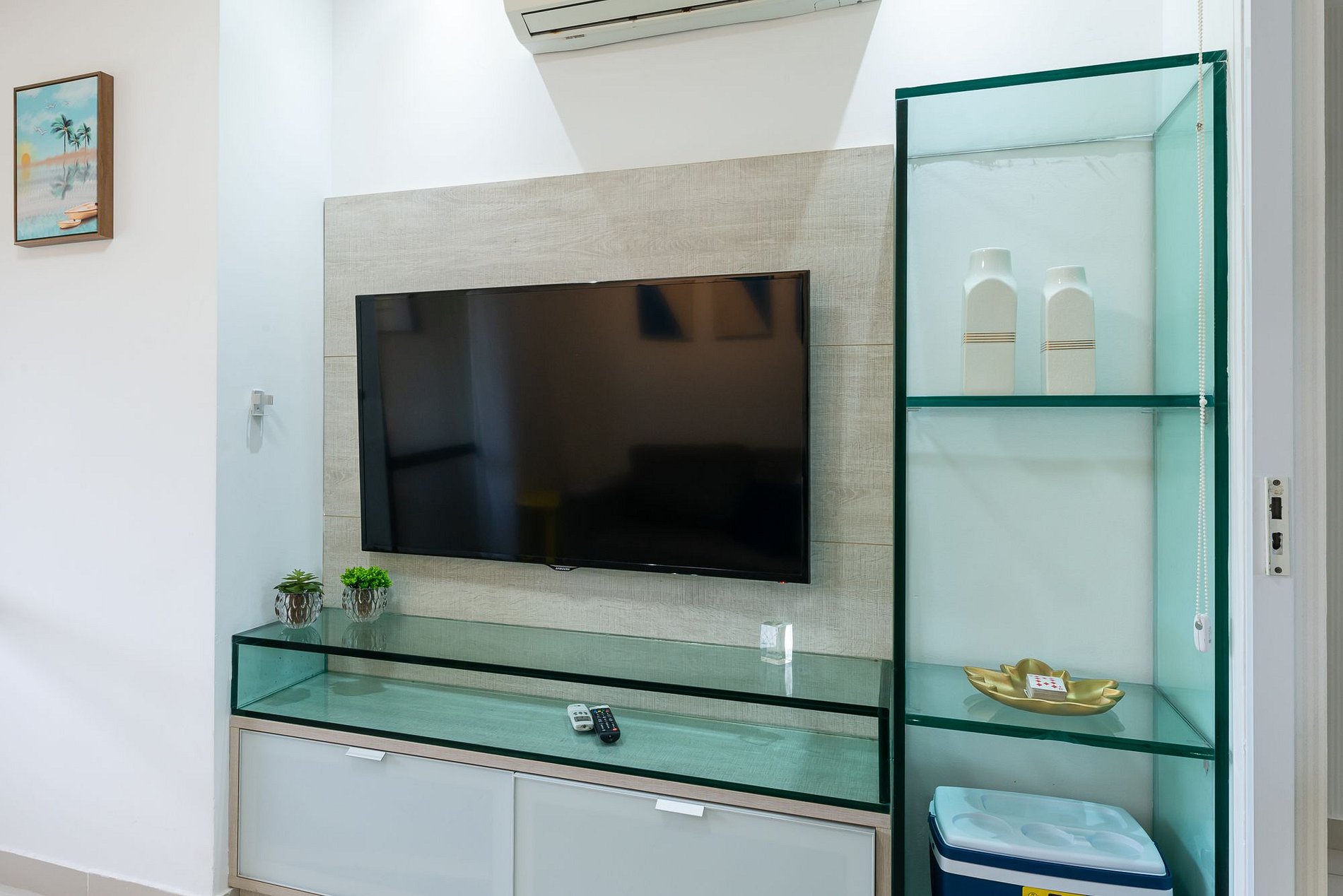 No mais, você vai encontrar 1 banheiro social, mesa para jantar, sala de estar com TV, sofá e cadeiras, varanda com mesas, cadeiras. Na cozinha você tem tudo que precisa: geladeira, micro-ondas, fogão, forno, jogo de prato, talheres, copos, xícaras, taças, e panelas, abridor de vinho e sanduicheira.