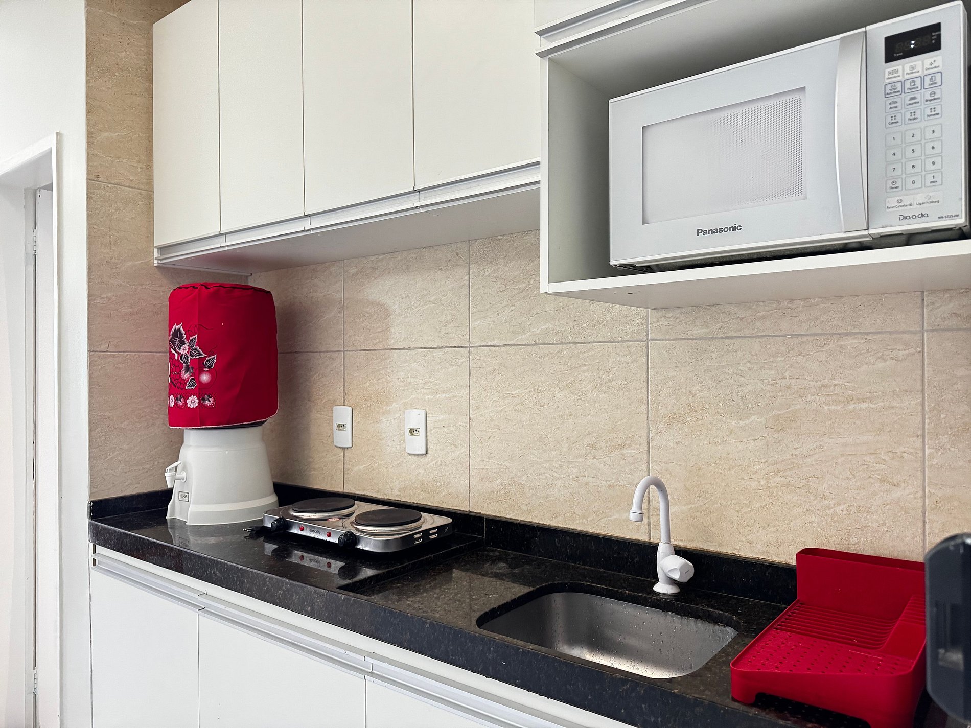 Bem-vindo ao Apart Hotel Marinas de Tamandaré — seu refúgio a beira mar de Carneiros - Tamandaré. Condominio completo com Piscina, Restaurante com café da manhã, petiscos e demais refeições, serviço de Bar na piscina e praia. Na frente desfrute das piscinas naturais com um banho de mar dos melhores da região. O flat tipo Studio bem completo com Fogão Elétrico, Panelas e Utensílios básicos, Microondas, Geladeira, ideal para máximo de 4 pessoas, sendo 1 cama casal e 1 Beliche com 2 solteiros.