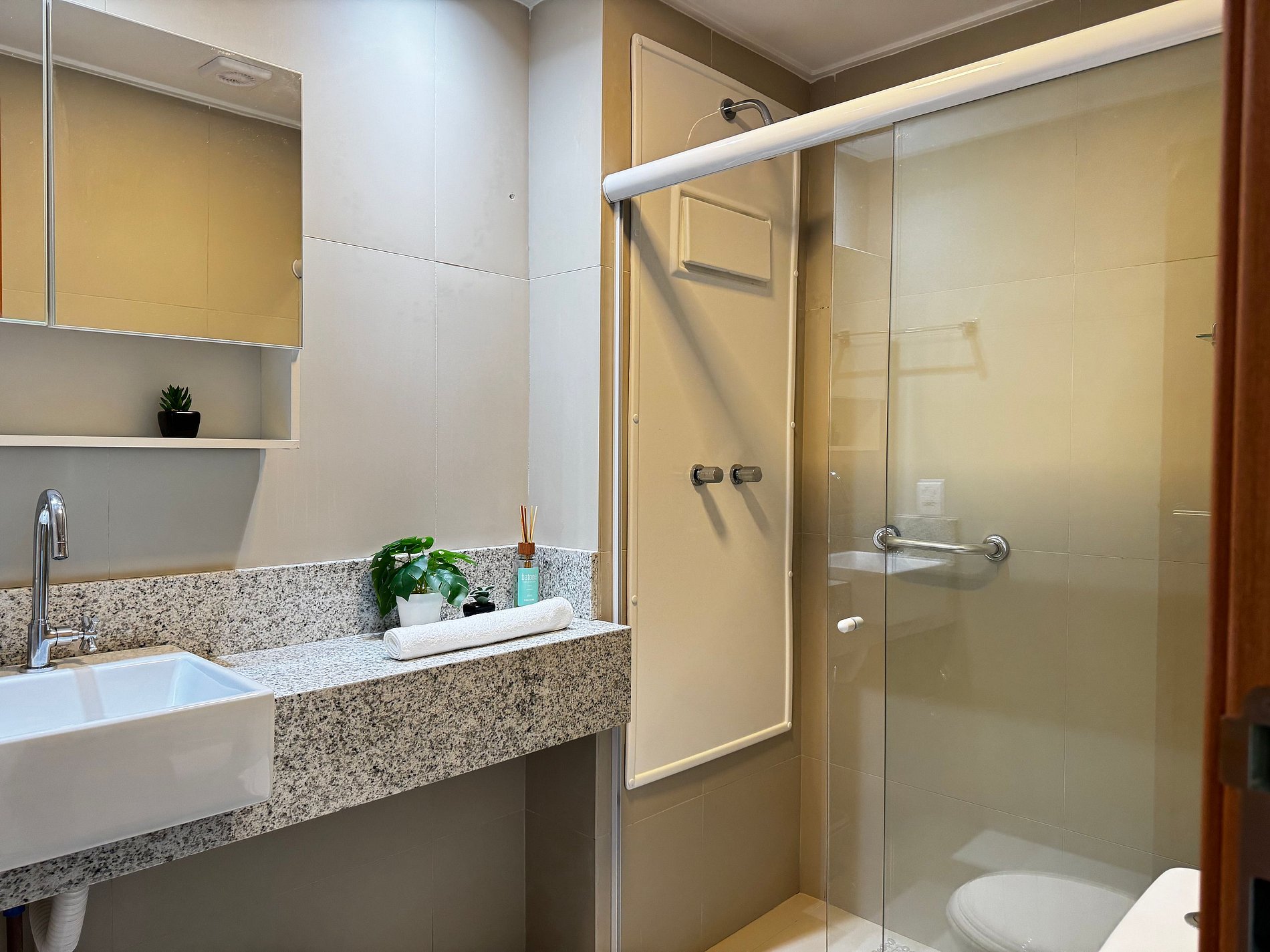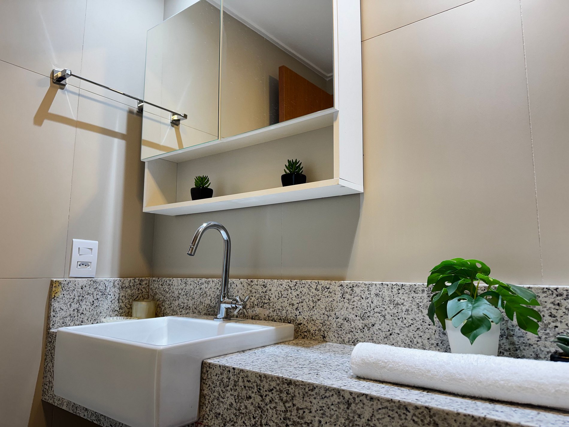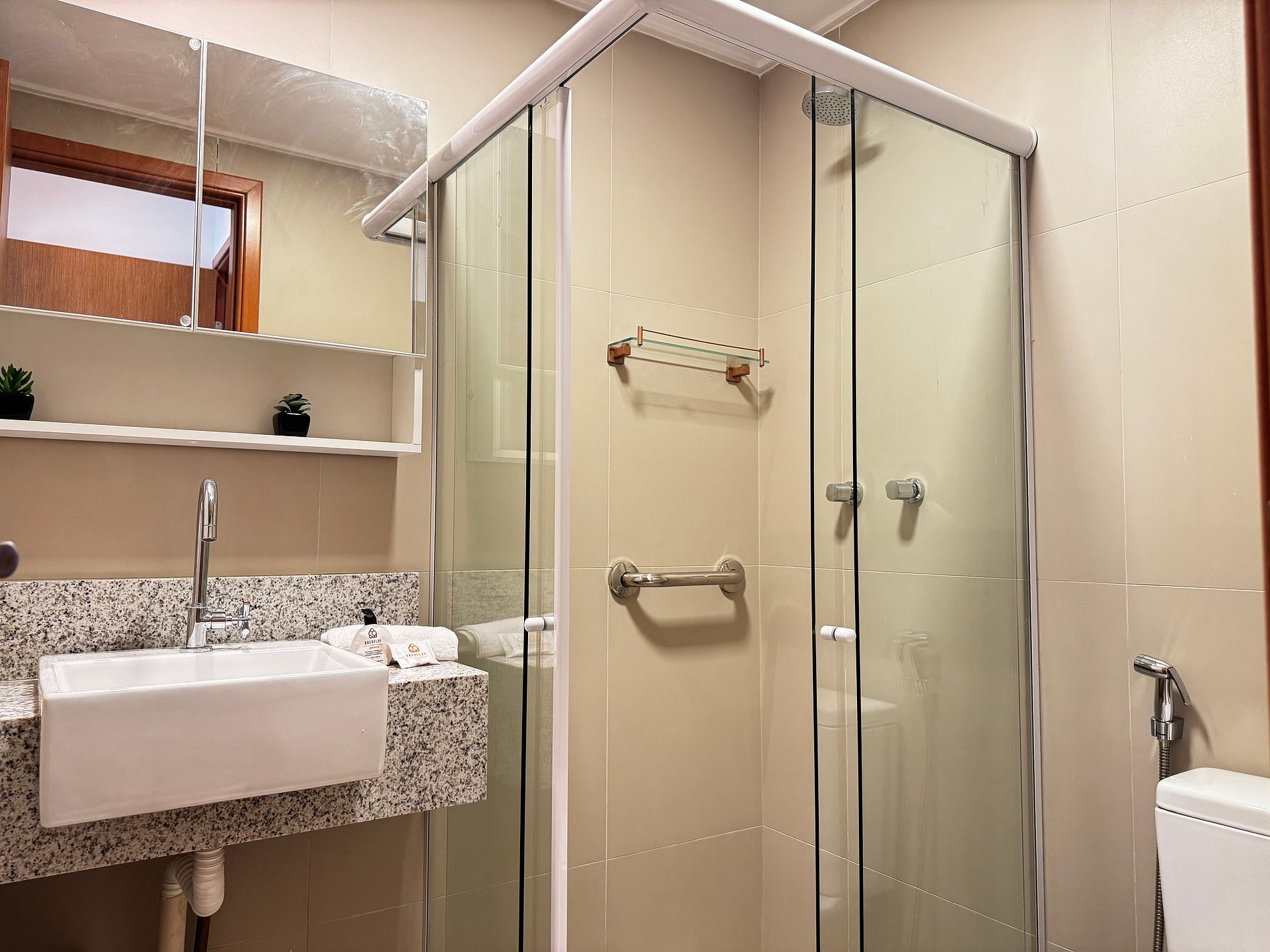 Na área de lazer, os hóspedes podem aproveitar piscina adulto e infantil, deck molhado, área com hidromassagem, espaço fitness, brinquedoteca, recepção com área de convivência e terraço com bar (ainda em ativação) — tudo pensado para momentos de relaxamento com família e amigos.