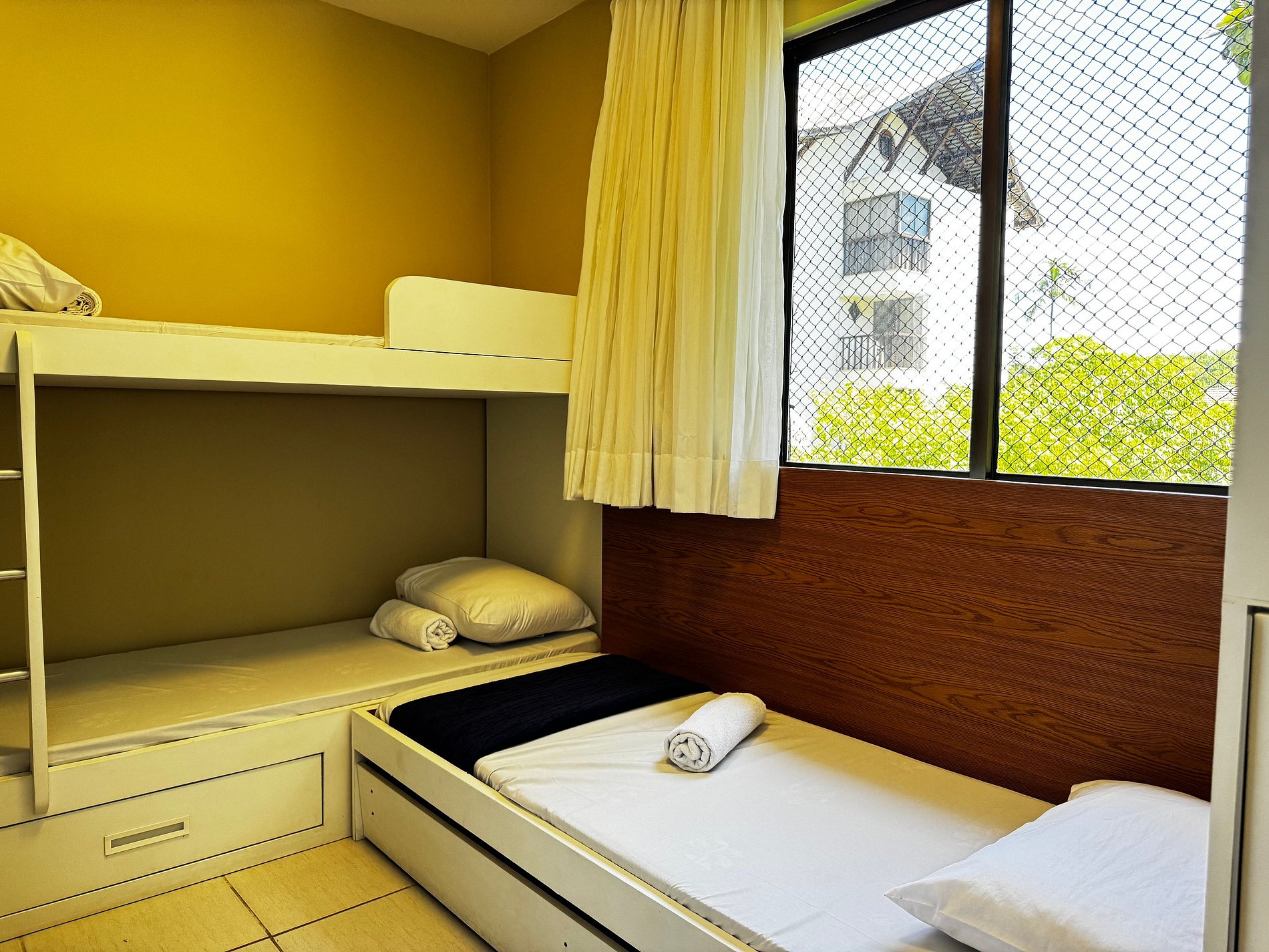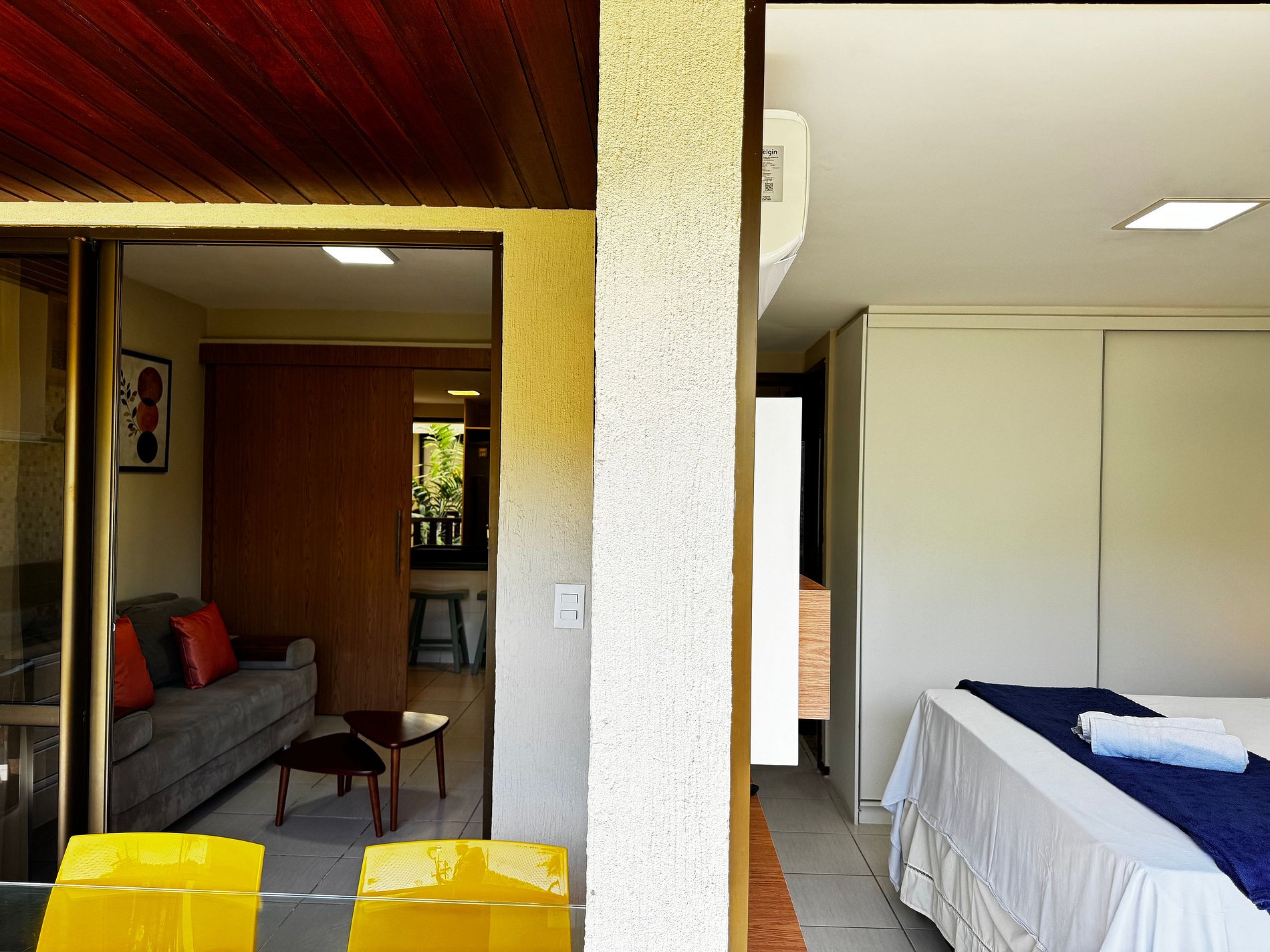 Aproveite para se hospedar em uma unidade perfeita para famílias ou grupos de amigos, com capacidade para até 6 pessoas, espaço amplo e estrutura de resort de alto nível. O imóvel possui dois quartos, sendo uma suíte com cama de casal, e outro quarto com um beliche e uma cama solteiro, além disso podemos disponibilizar um colchão extra, todos com ar-condicionado, guarda-roupas e varanda Gourmet. Além disso, conta com sala com sofá, TV e ar-condicionado.