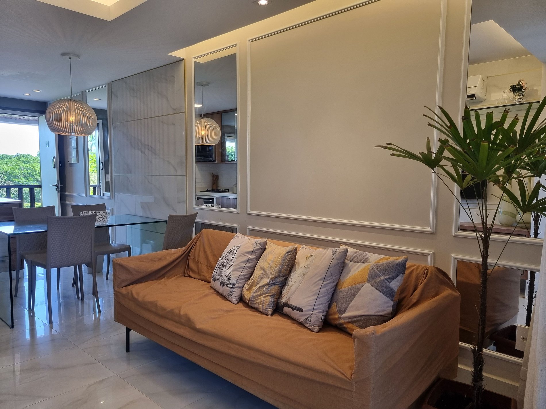 No mais, você vai encontrar 1 banheiro social, mesa para jantar, sala de estar com TV, sofá e cadeiras, varanda com mesas, cadeiras. Na cozinha você tem tudo que precisa: geladeira, micro-ondas, Airfry, fogão, forno, jogo de prato, talheres, copos, xícaras, taças, e panelas, abridor de vinho, gelágua e sanduicheira.
