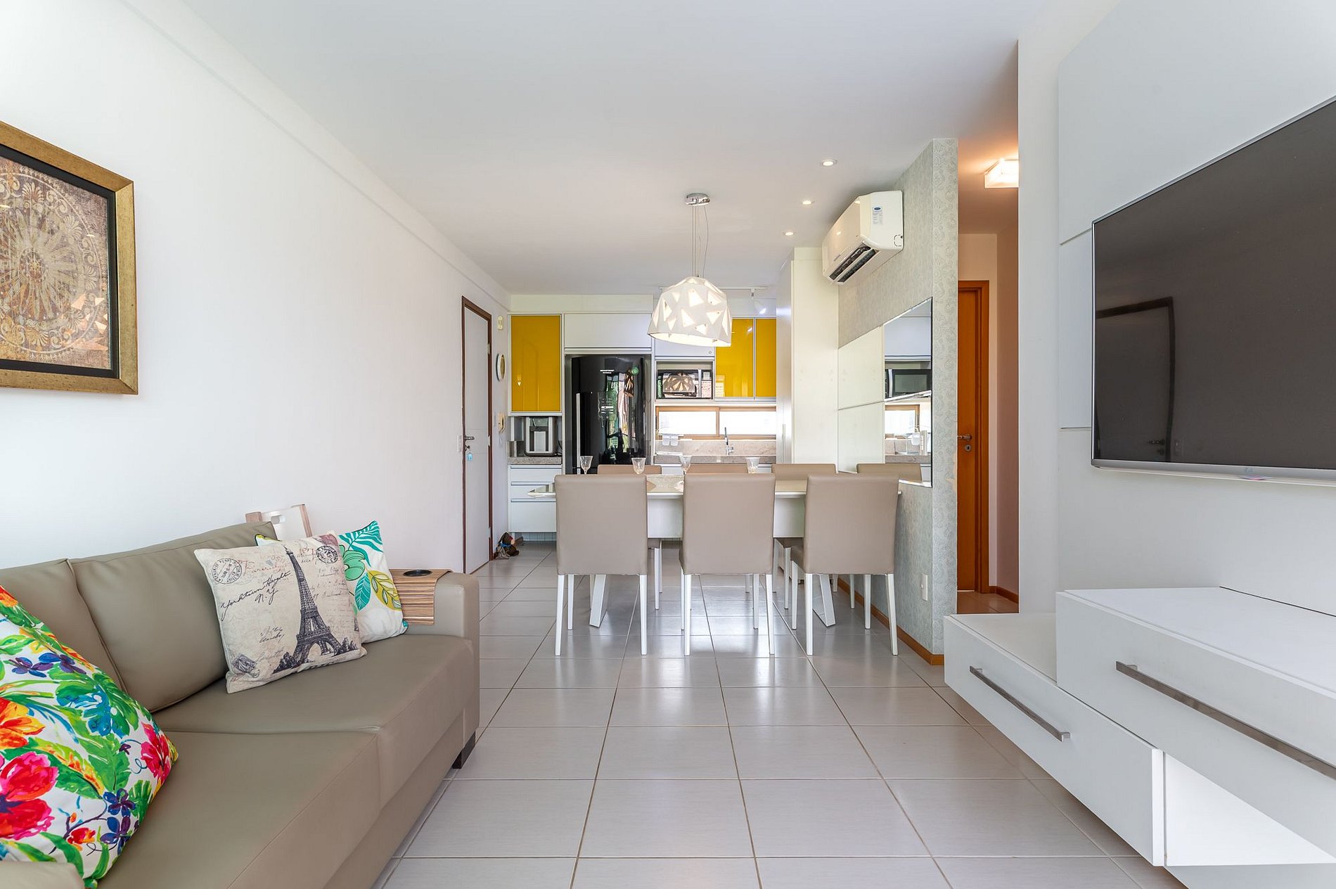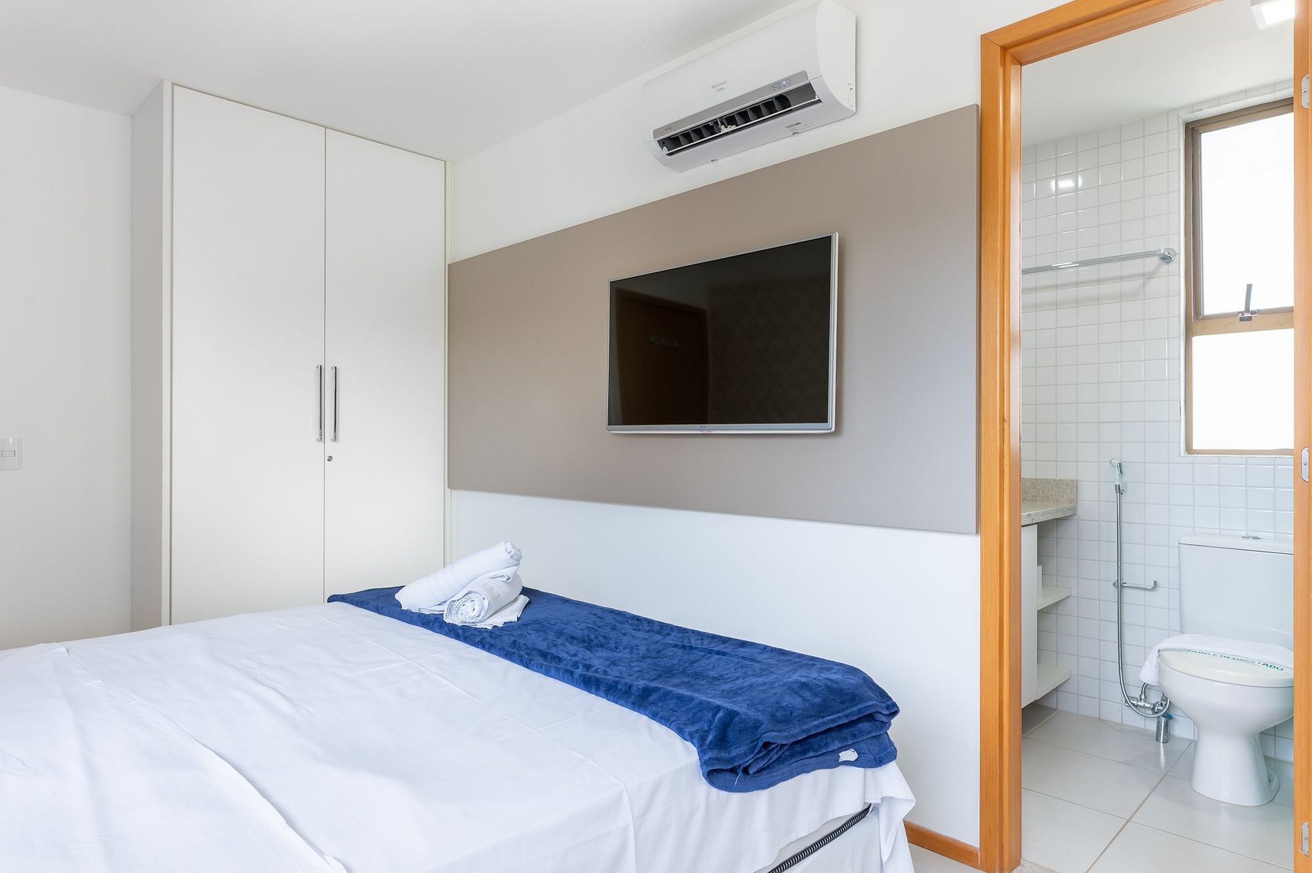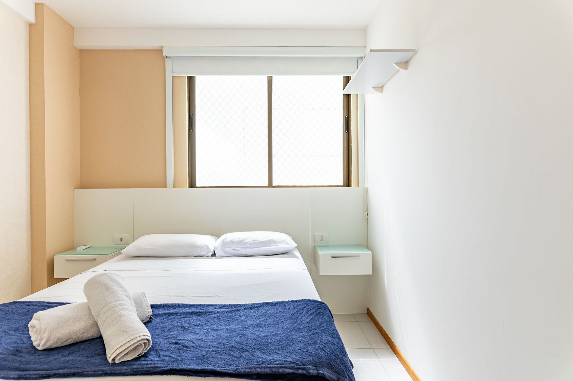 • Acomodações: O flat é totalmente mobiliado com três quartos sendo 2 camas de casal e 2 camas de solteiro e com espaços modernos e bem equipados. O apartamento é nascente e todos os quartos possui Ar-condicionado. Sala ampla com 2 ambientes e cozinha completa.