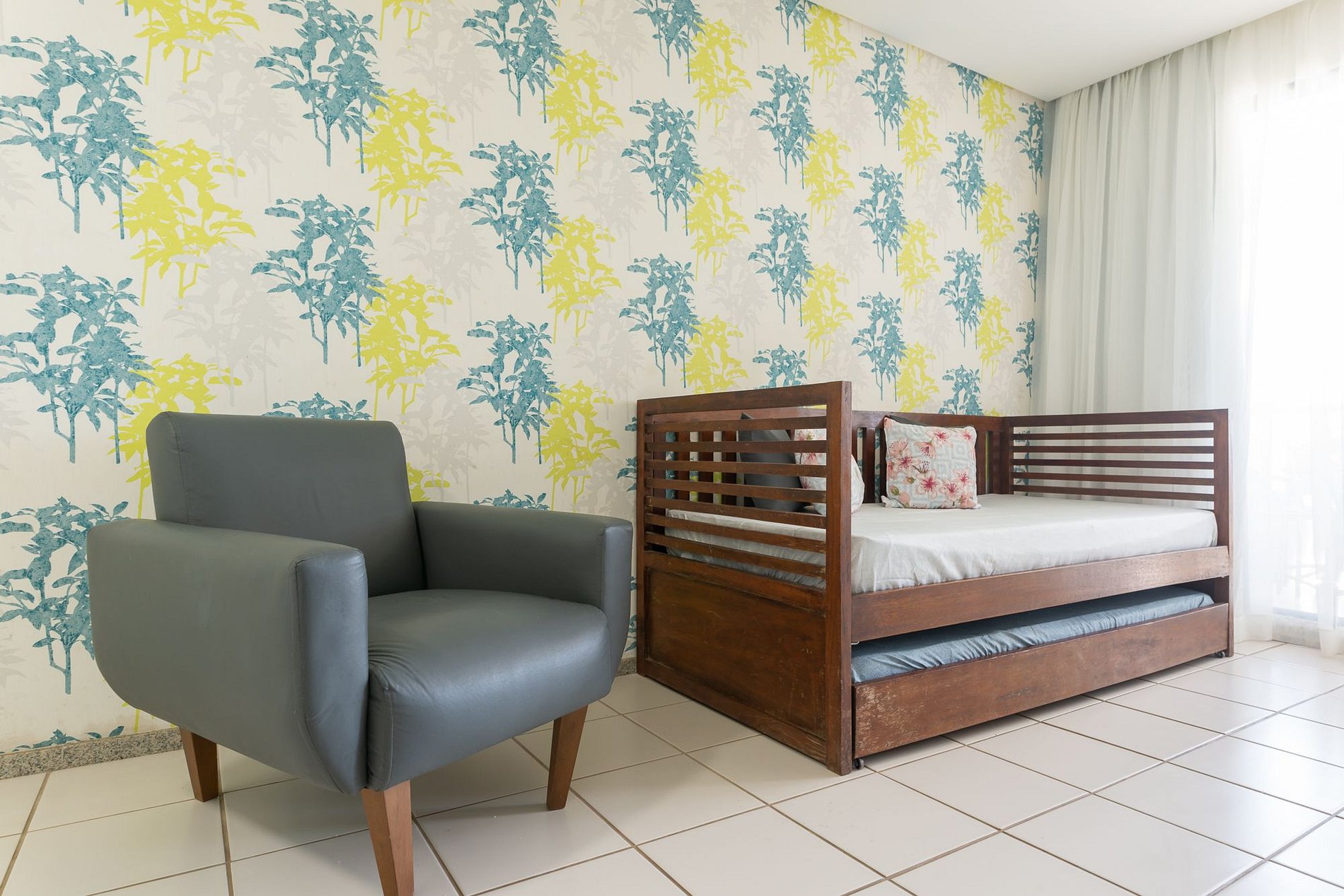 Praia do Muro Alto é uma ótima escolha para viajantes interessados em locais com clima tropical, litoral e sol em abundância. Nesse local, hospede-se em uma unidade perfeita para família ou amigos, acomodando até 6 pessoas, com bastante espaço, bonita decoração e com estrutura de resort de encher os olhos. Conta com 1 quarto com 1 cama de casal, 1 cama de solteiro e 1 cama de solteiro auxiliar, WC, Sala com sofá cama, Cozinha equipada. Sala e quarto equipado com Ar-condicionado e TV.