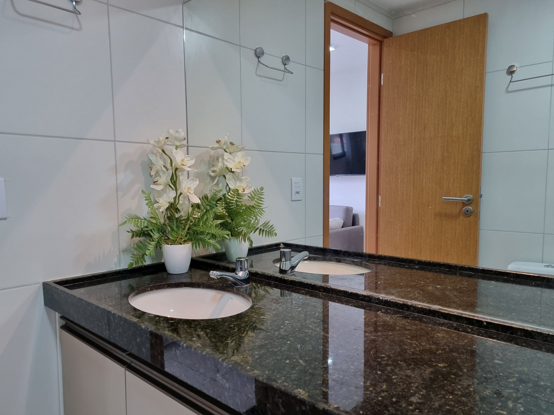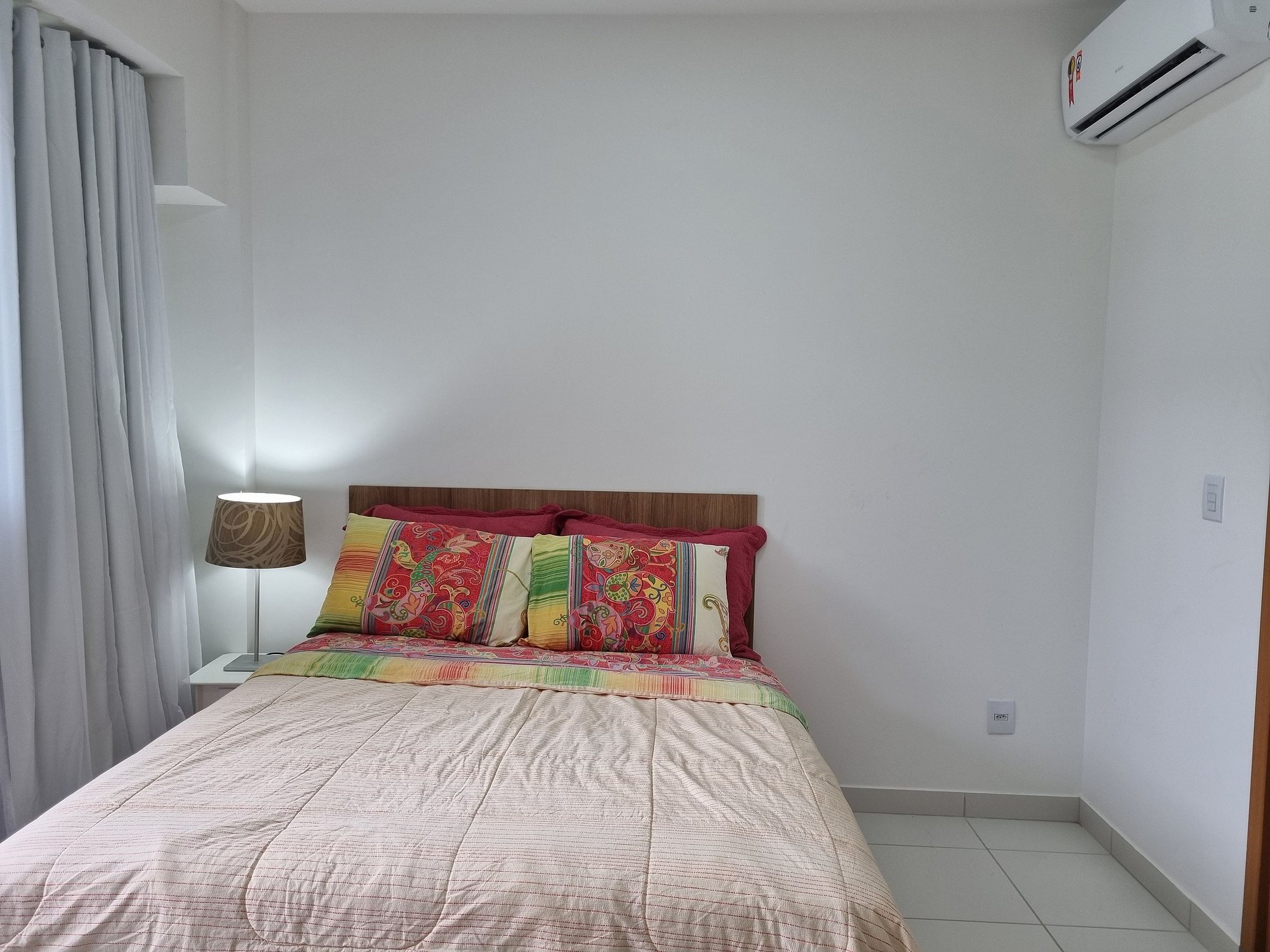 O apartamento tem 26m2, uma suíte completa com Smart TV 50", Arcondicionado 19mil Btus, Geladeira, Fogão Elétrico 2 bocas, Forno Microondas, Cama Casal mais sofá cama casal.