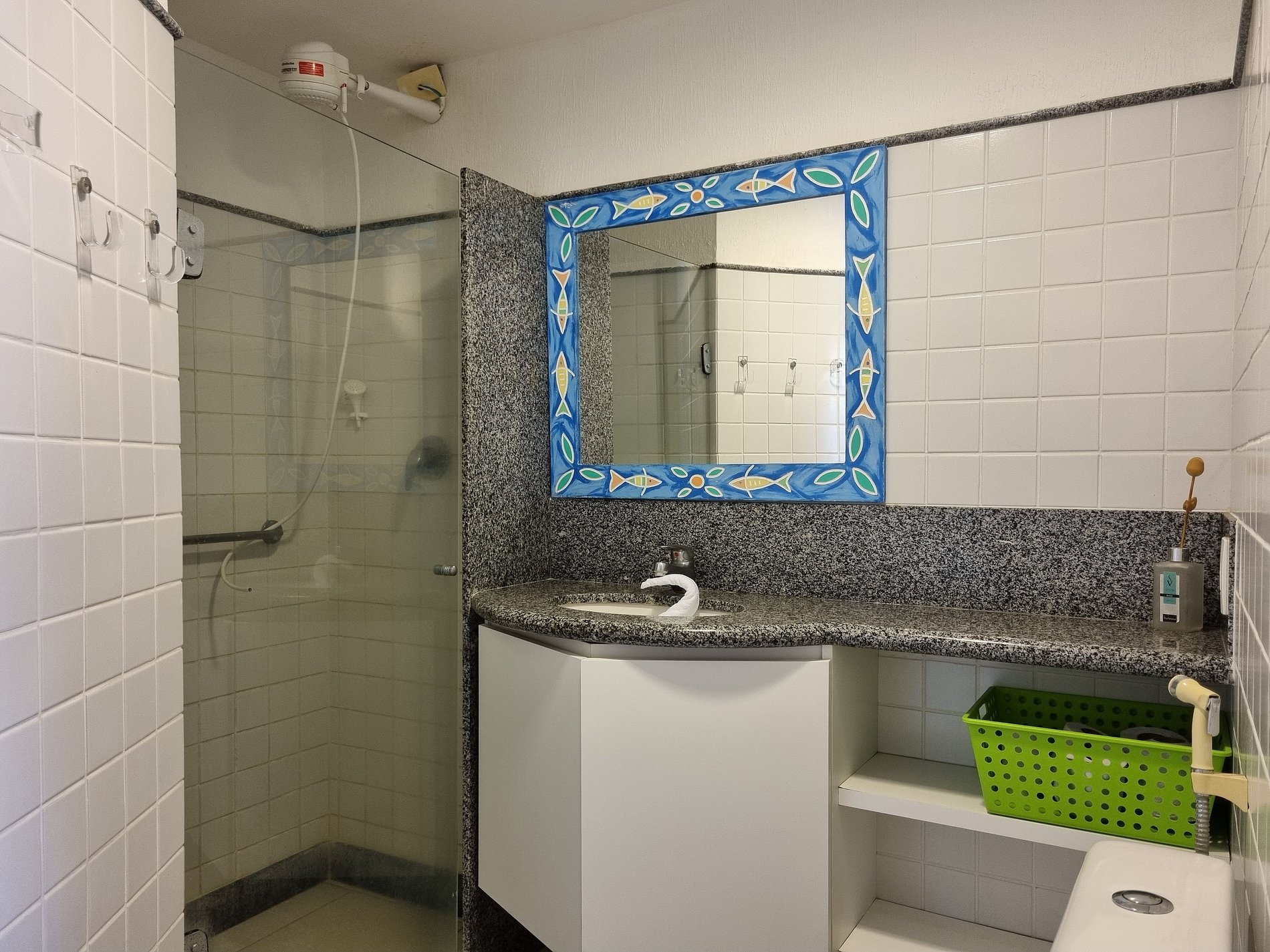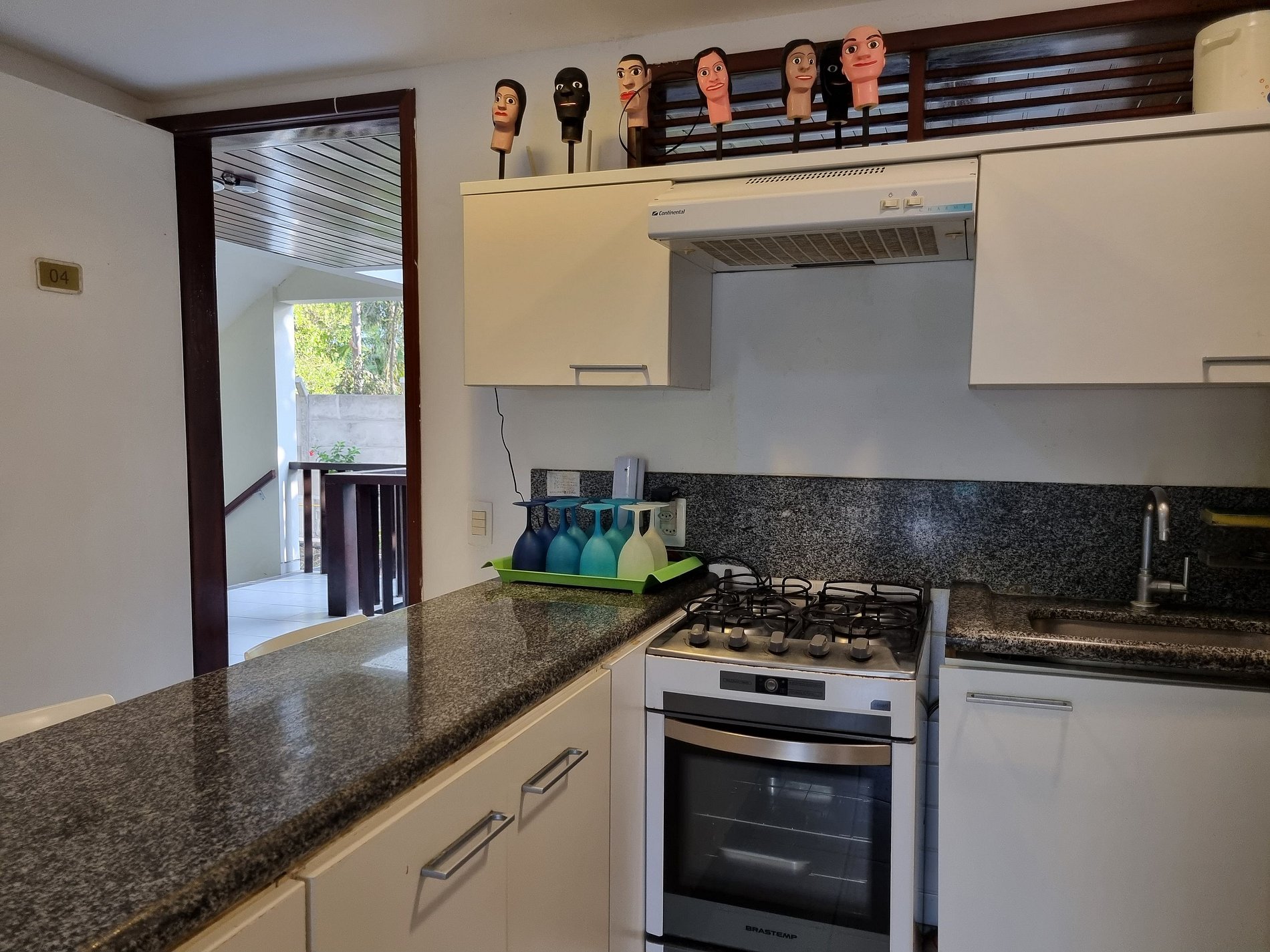 No mais, você vai encontrar 1 banheiro social, mesa para jantar, sala de estar com TV, sofá e cadeiras e mesa na varanda. Na cozinha você tem tudo que precisa: geladeira, micro-ondas, fogão, forno, jogo de prato, talheres, copos, xícaras, taças, panelas, abridor de vinho e sanduicheira.
