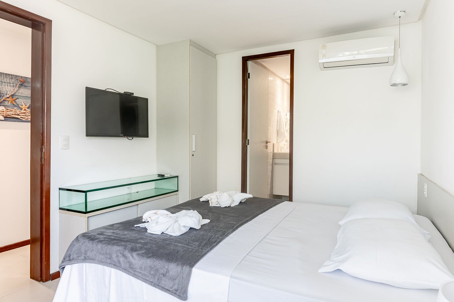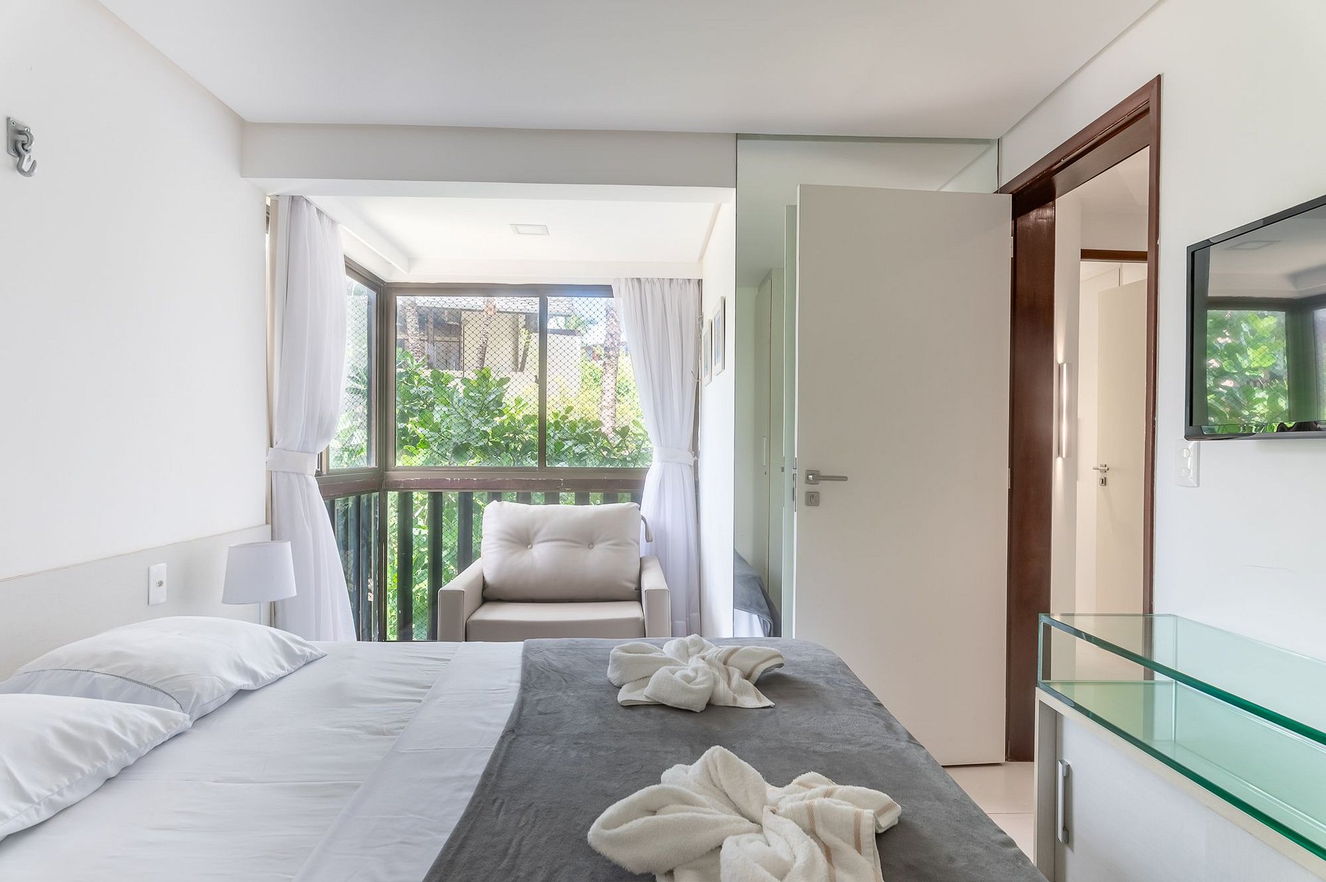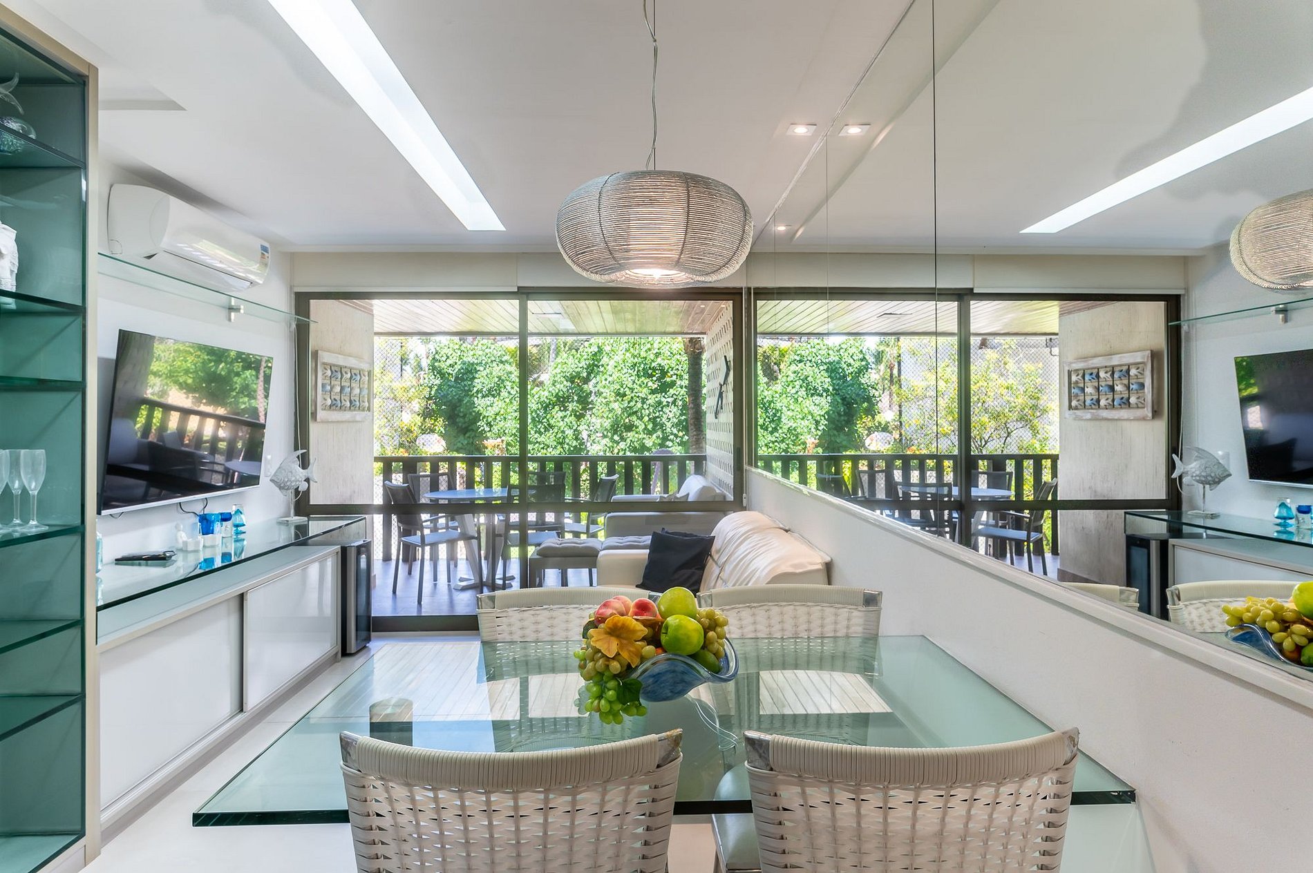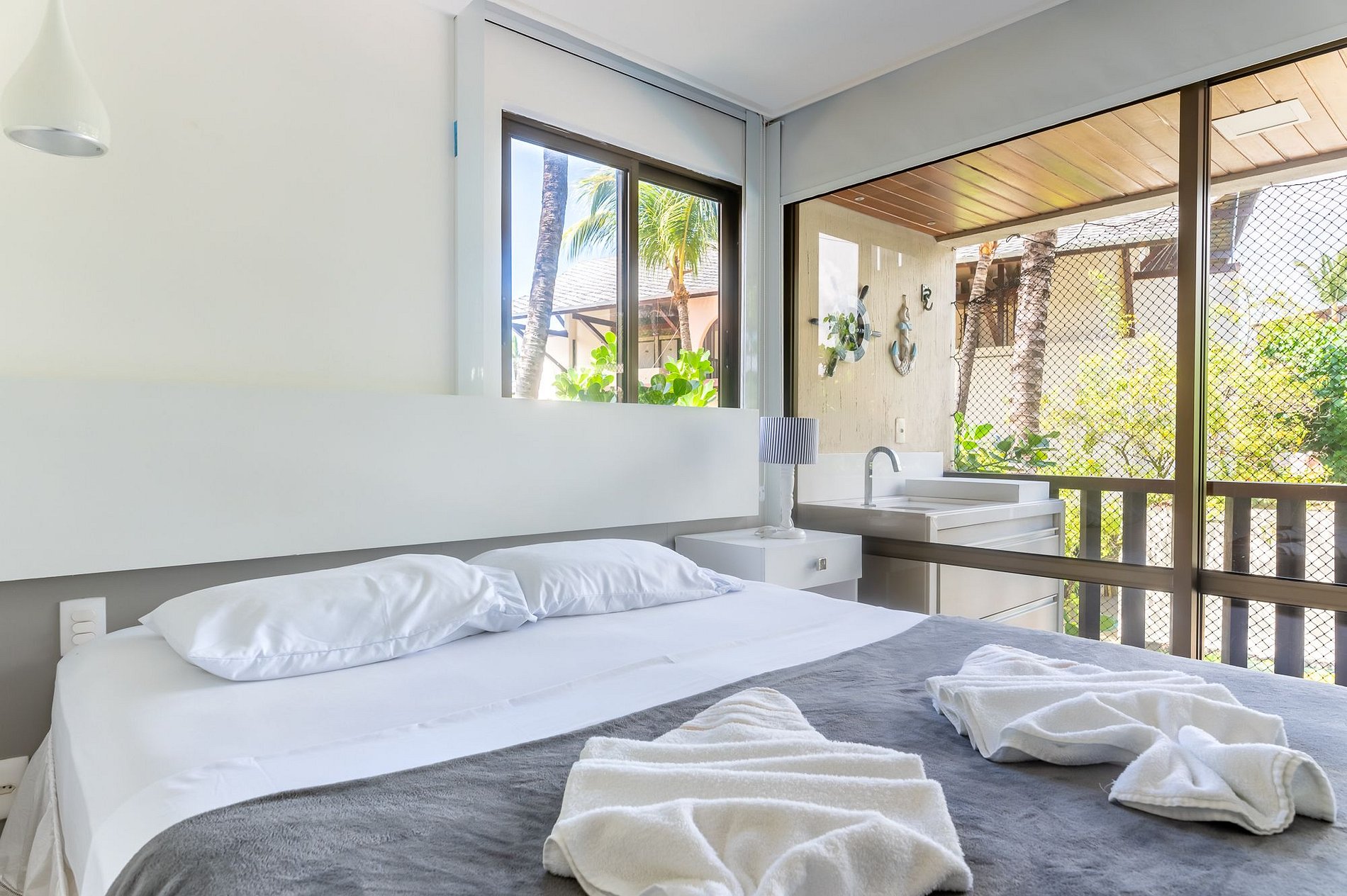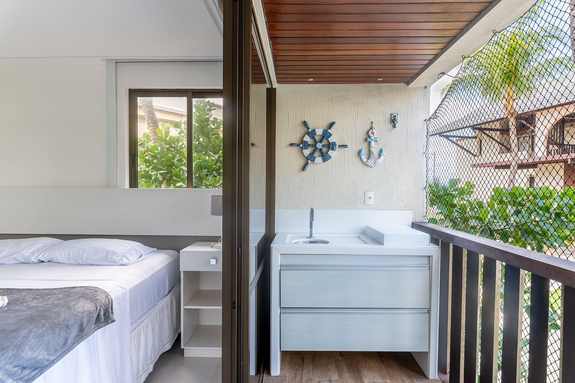 Esta acomodação tem três suítes bem decoradas, no primeiro andar do Bloco Mero no Nannai Residence. Vista para piscinas e varanda Gourmet para sua comodidade e de toda sua família. O flat é amplo e completo com Cozinha bem equipada e até Adega.