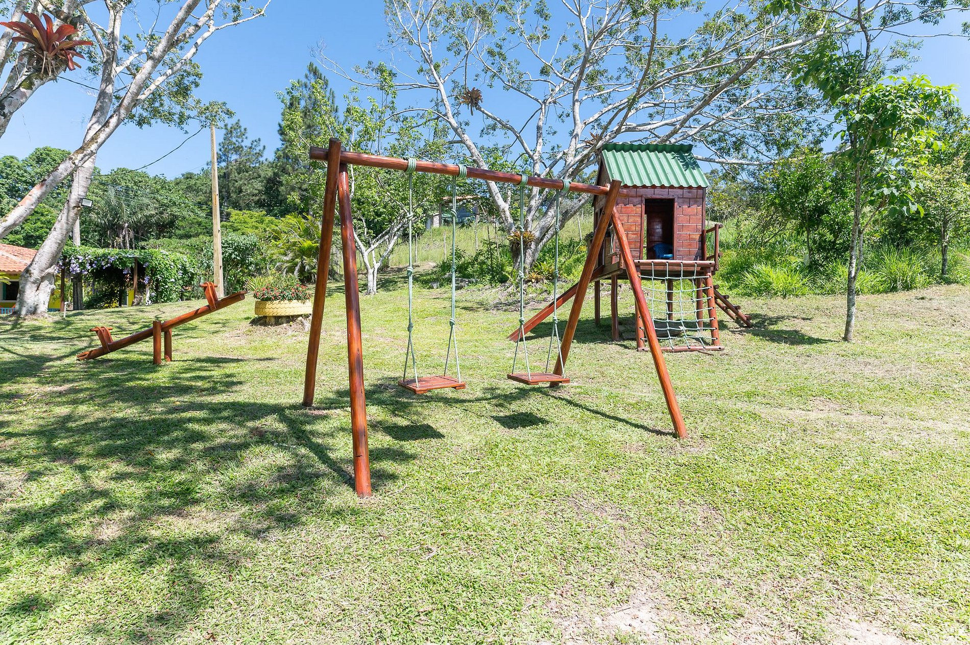 - Ampla área verde com árvores frutíferas
