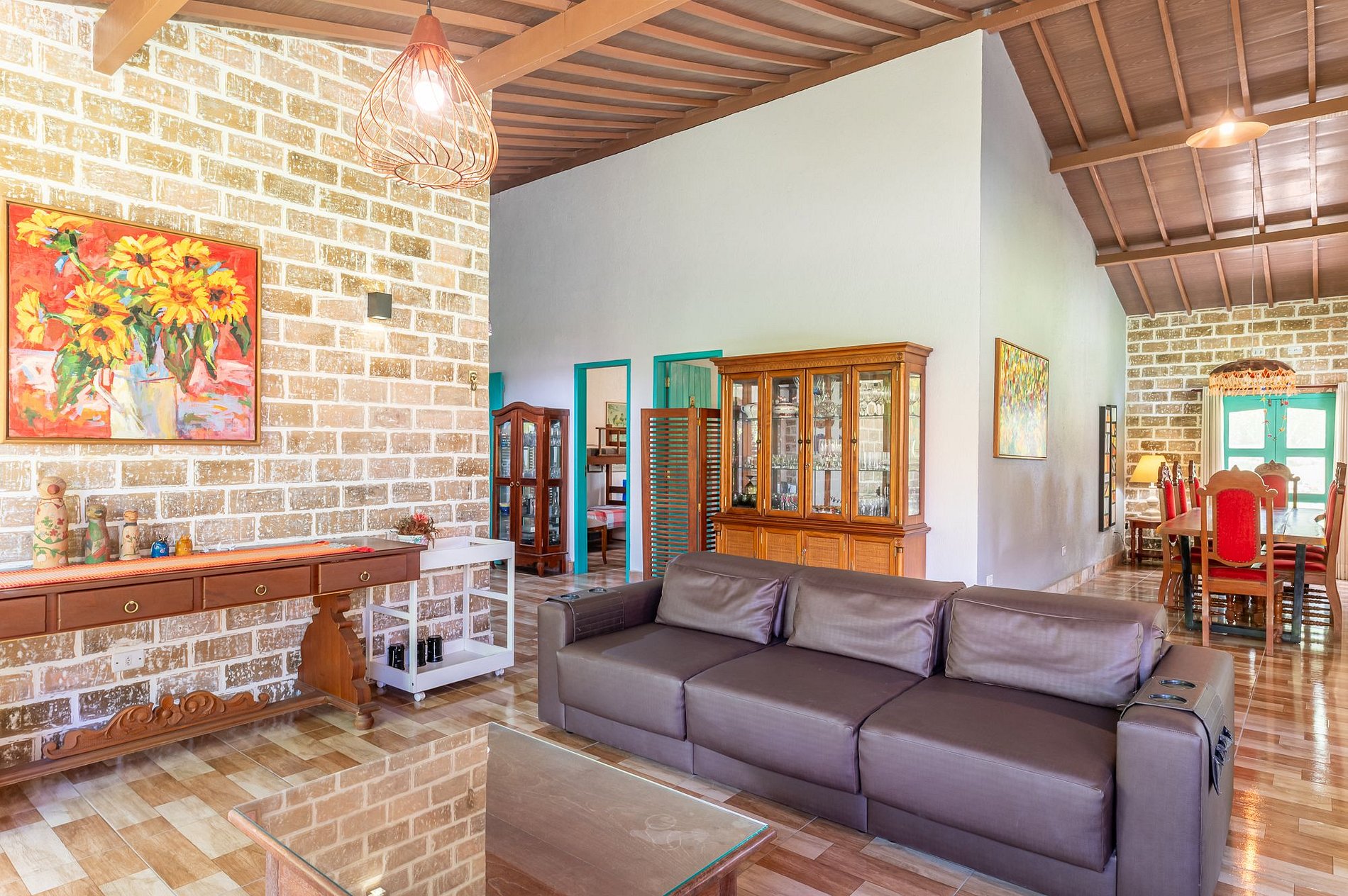 - Sala ampla e arejada com sofá e TV e mesa de Jantar