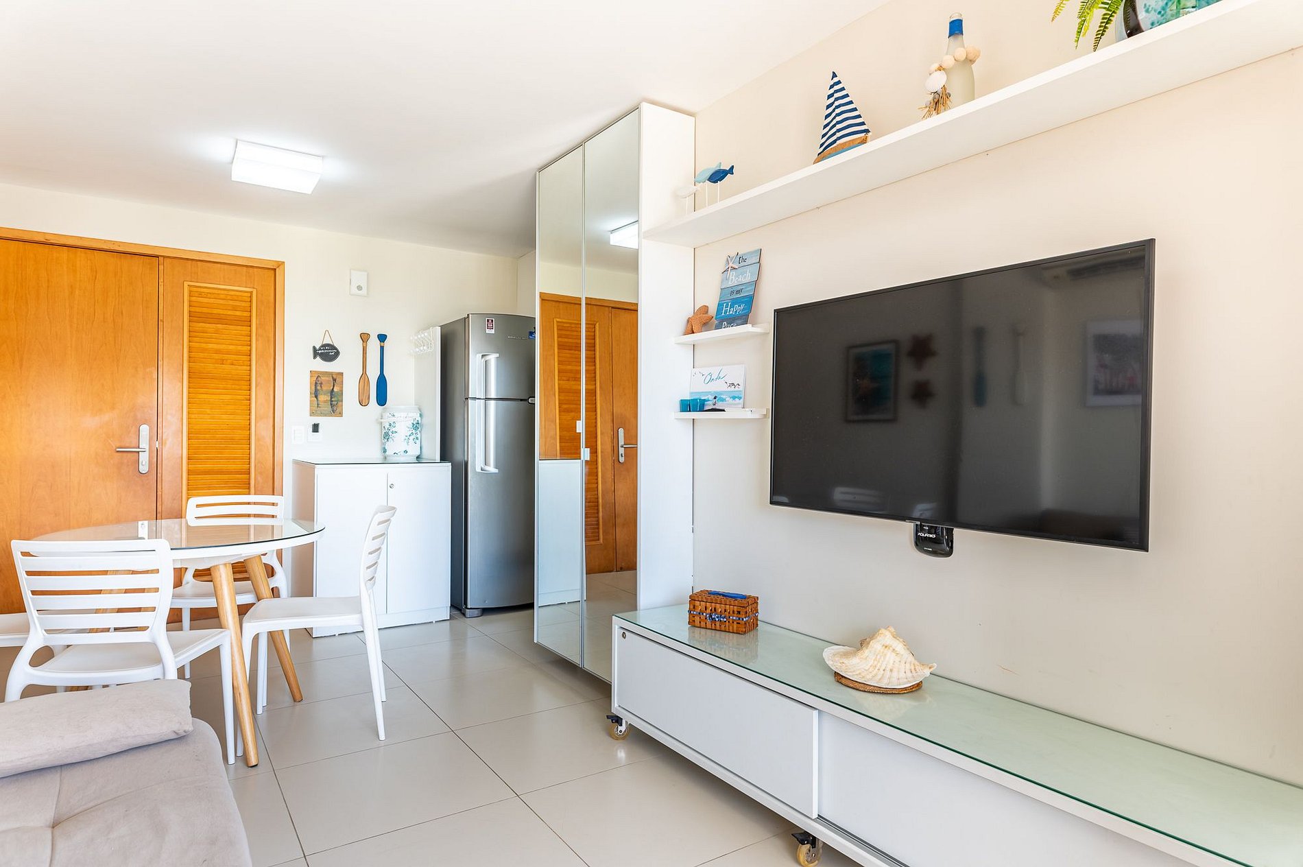 Unidade de 60m², com 2 quartos (1 suíte), sala para dois ambientes, cozinha equipada e varanda com vista para piscinas. Acomoda até 6 pessoas, ideal para famílias ou grupos de amigos. Equipado com ar-condicionado, Wi-Fi gratuito, TV, Cozinha completa equipada com utensílios, roupa de cama e toalhas.