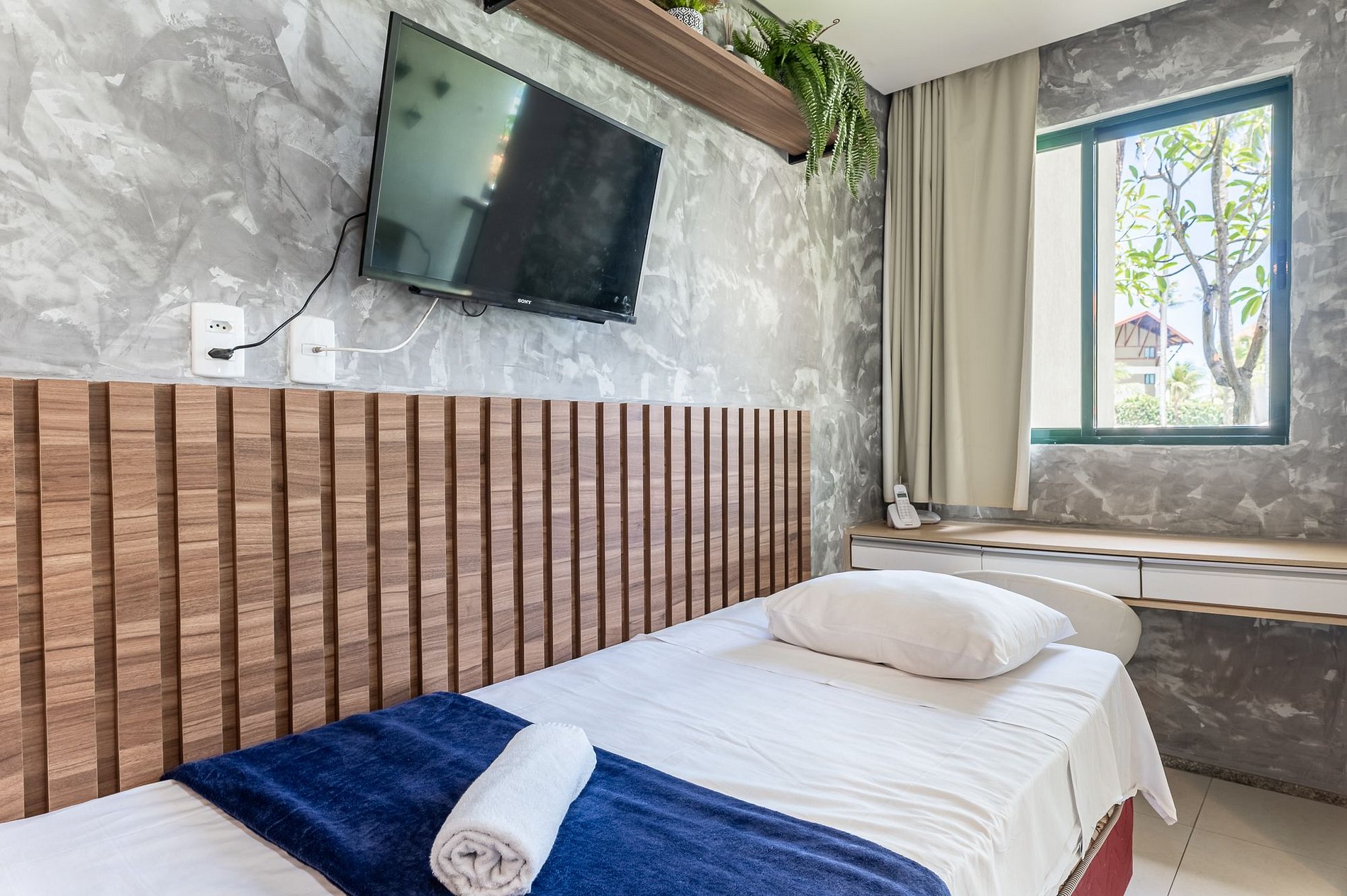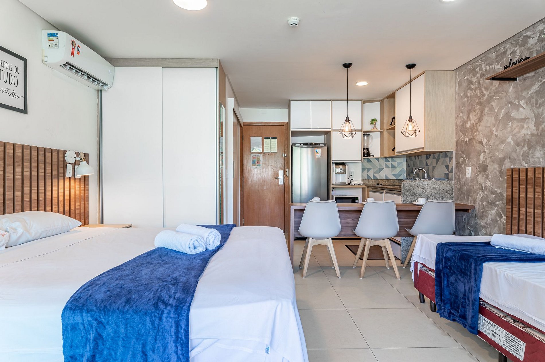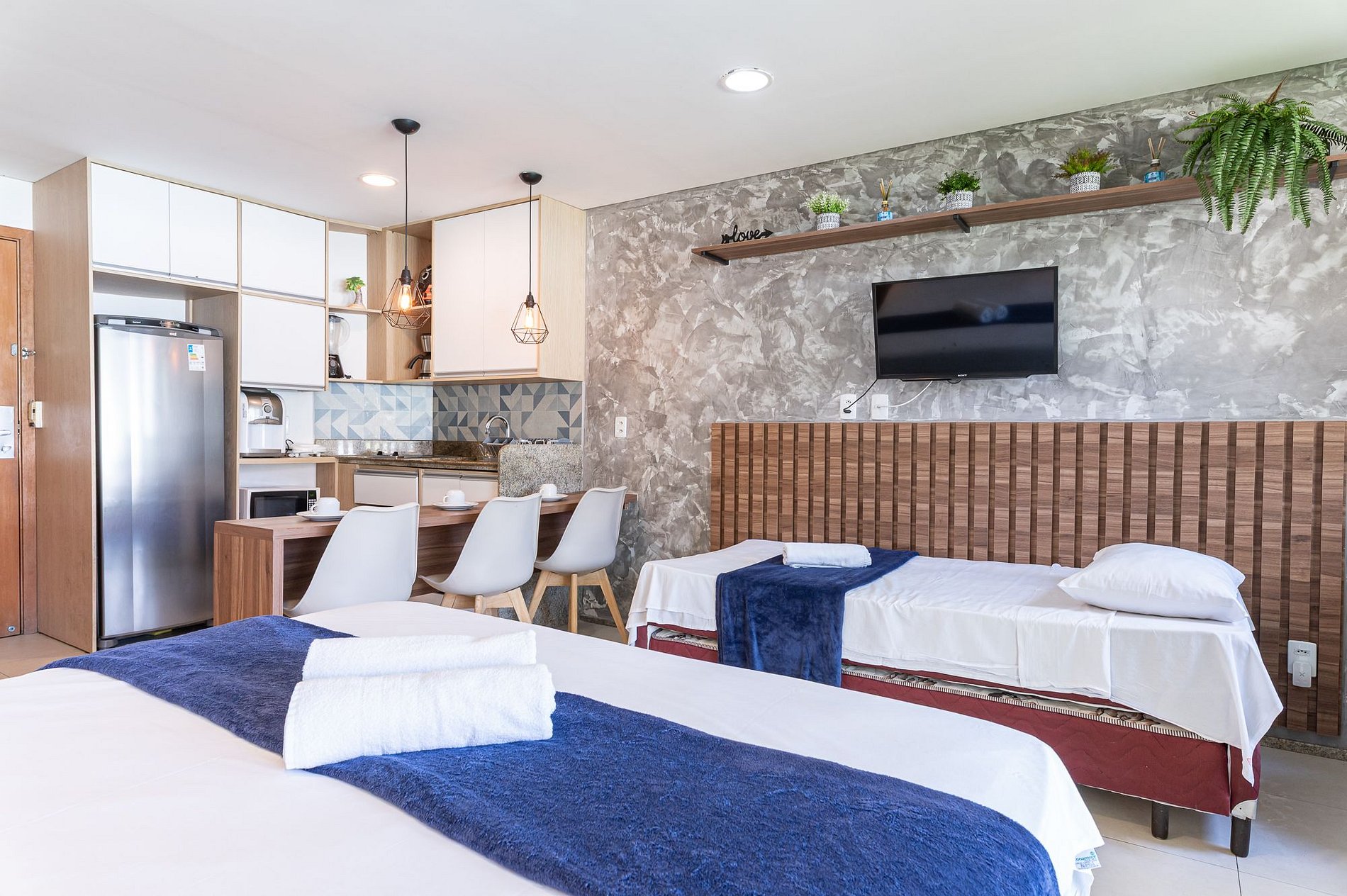 Praia do Muro Alto é uma ótima escolha para viajantes interessados em locais com clima tropical, litoral e sol em abundância. Nesse local, hospede-se em uma unidade perfeita para família ou amigos, acomodando até 4 pessoas, com bastante espaço, bonita decoração e com estrutura de resort de encher os olhos. A acomodação é um Studio Completo com cama casal, cama solteiro mais auxiliar, WC, Cozinha compacta e equipada. O Apartamento fica localizado no Bloco F com vista direta para as Piscinas.