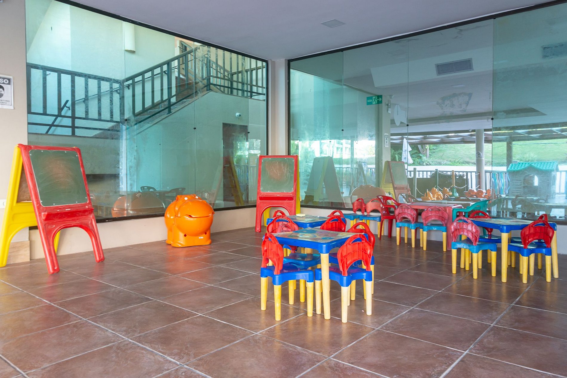 Comodidades: Piscina, Sauna, quadra de tênis e de futebol, recreação, salão de jogos, parquinho, academia, heliporto, restaurante, bares com atendimento na piscina, praia e flat.