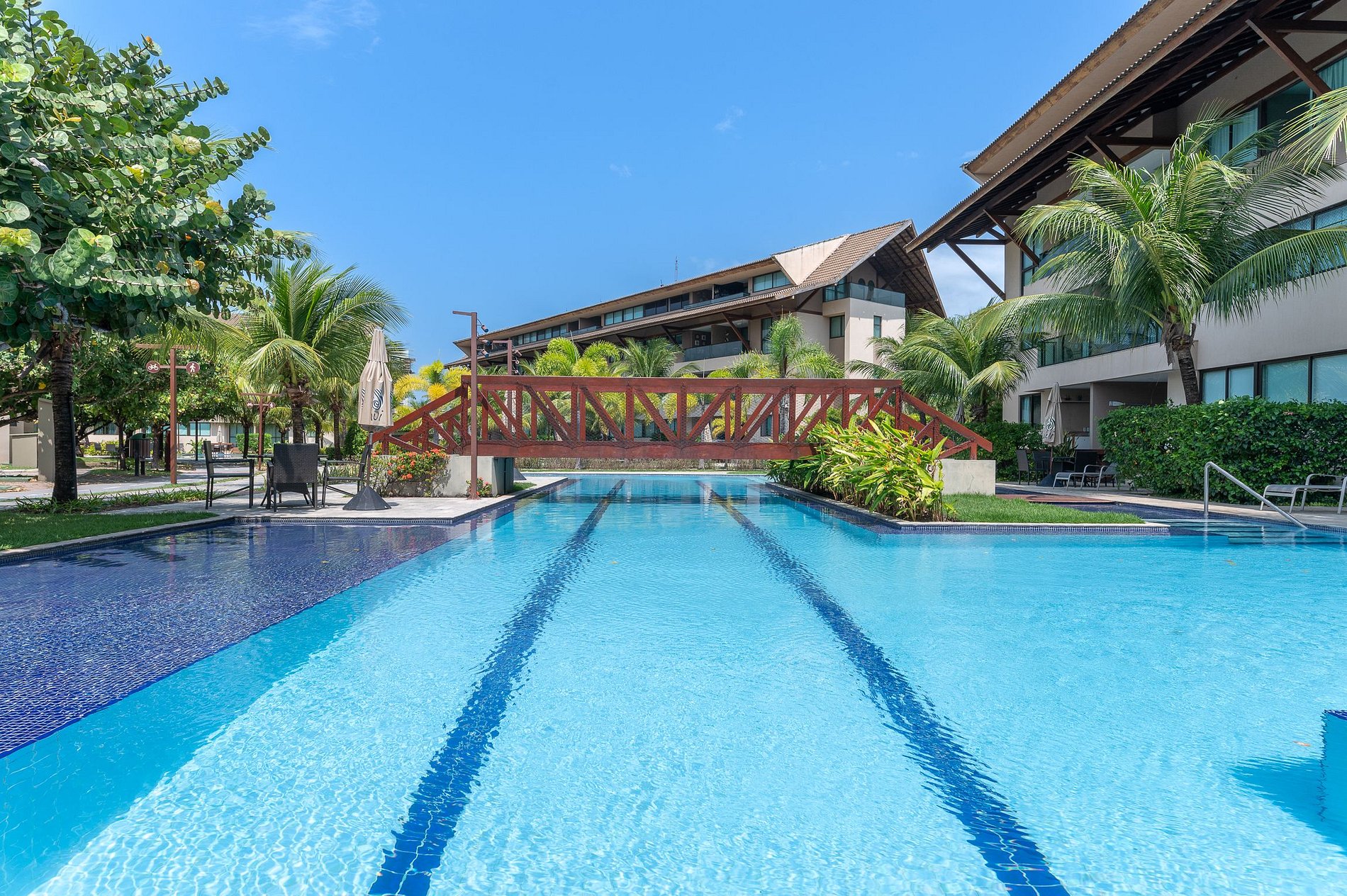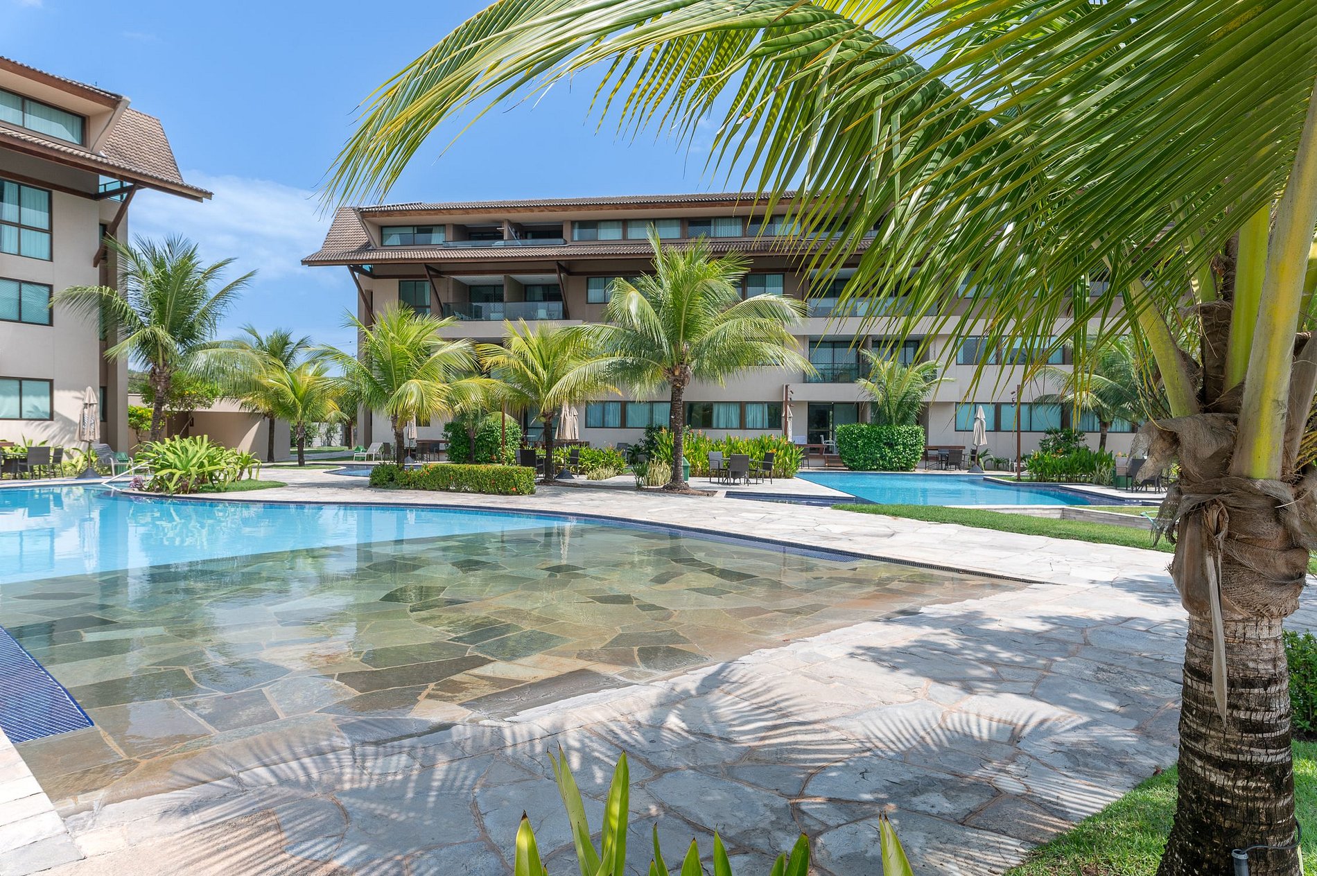 Somos um destino ideal tanto para férias em família, casais que buscam um ambiente para um retiro a dois, assim como para realização do seu evento. Diversas piscinas espalhadas por todo o condomínio estarão a disposição de todos nossos hóspedes sem restrições além disso conte com um deck de frente pro mar.